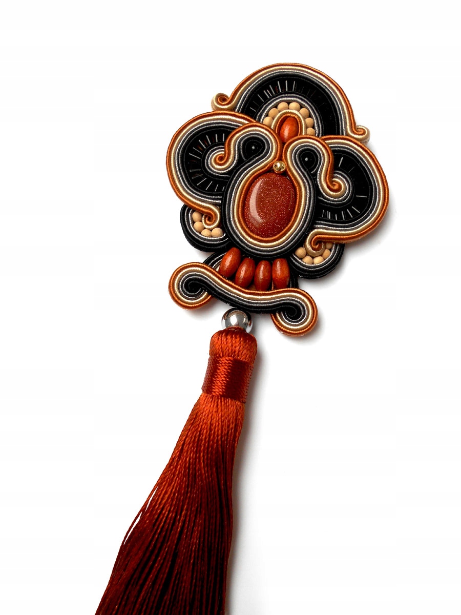 Размеры: общая длина с кисточкой - 20 см, сутажный элемент - длина 7,5 см/ширина 6 см.