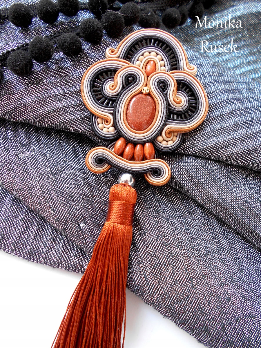 BROSZKA SUTASZ boho 100% hand made PIASEK PUSTYNI