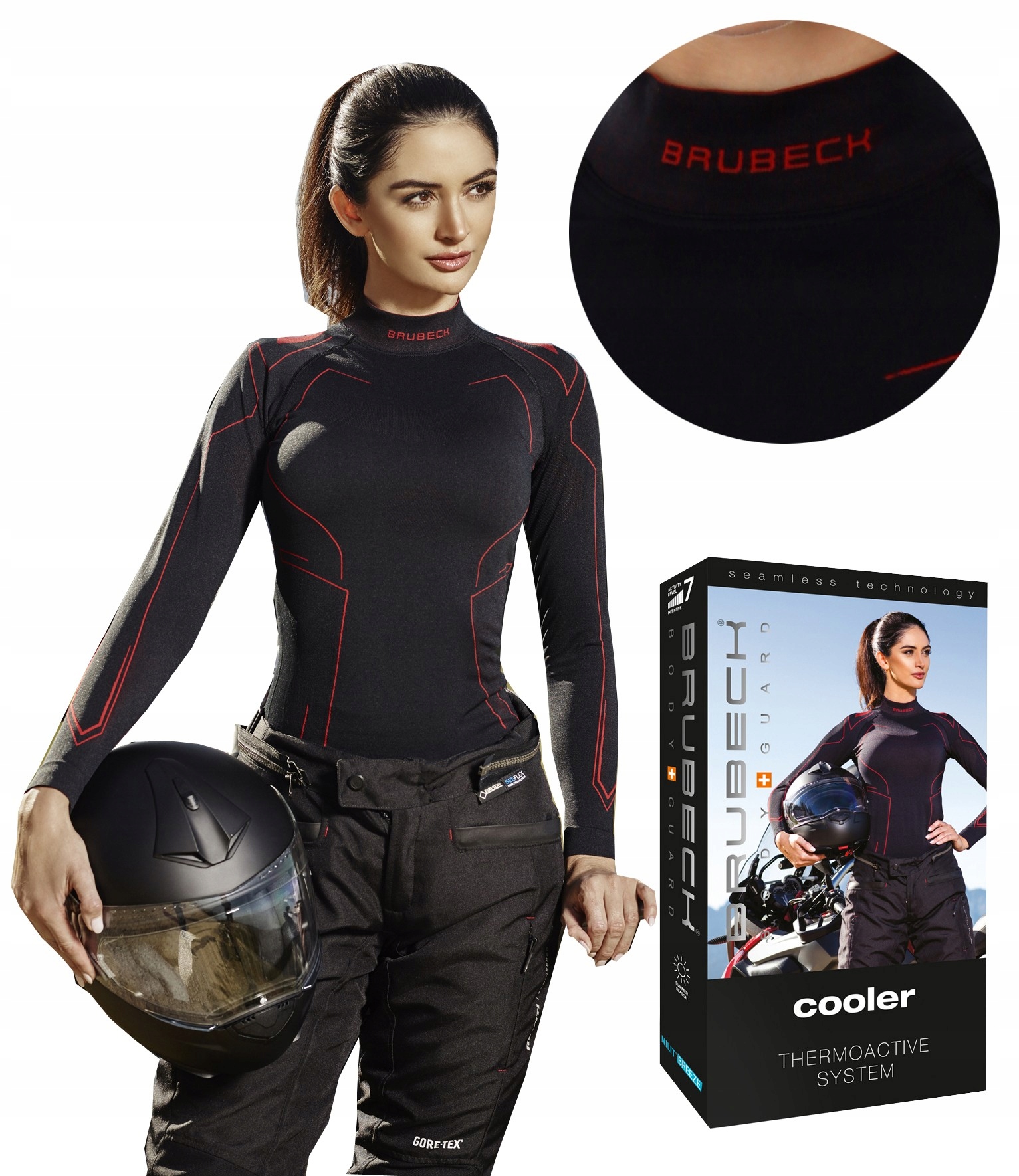 BRUBECK COOLER WOMEN – ДЫХАТЕЛЬНАЯ ЖЕНСКАЯ МОТОФУТБОЛКА – прежде чем представить на рынке моторубашку Cooler, бренд Brubeck протестировал ее во многих лабораториях на предмет динамики выведения пота. Для усиления эффекта толстовка Cooler оснащена МНОГОЧИСЛЕННЫМИ ВЕНТИЛЯЦИОННЫМИ ЗОНАМИ, через которые, с одной стороны, транспортируется лишняя влага, а с другой - кожа имеет постоянный доступ воздуха