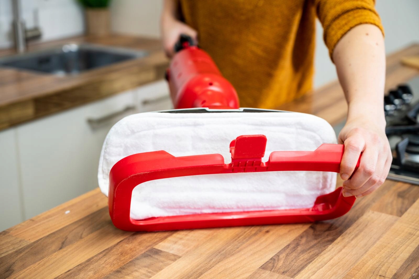 Чтобы использовать швабру, вылейте воду в резервуар до максимальной емкости 330 миллилитров, мы рекомендуем использовать дистиллированную или деминерализованную воду вместо водопроводной воды.