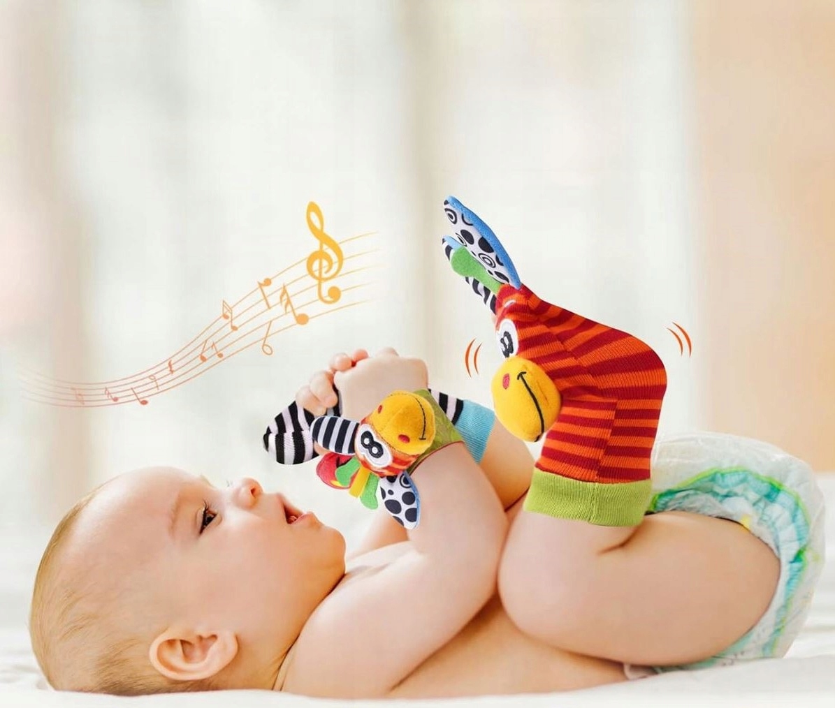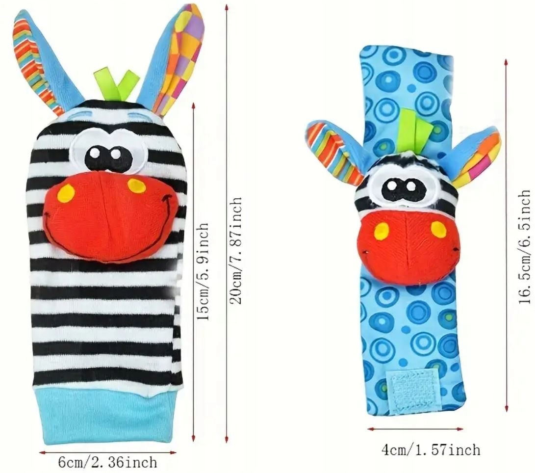 Повязки и носки (4 штуки) с животными — идеальная игрушка для самых маленьких детей. Эти красивые и изящные повязки на голову доставляют удовольствие от игры, не оказывая давления на маленькие ручки и ножки.