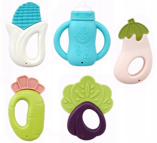 Мягкие резиновые элементы выполняют функцию прорезывателя — они изготовлены из нетоксичного силикона без запаха. При надкусывании игрушка нежно массирует десны ребенка, что особенно полезно в период прорезывания зубов.