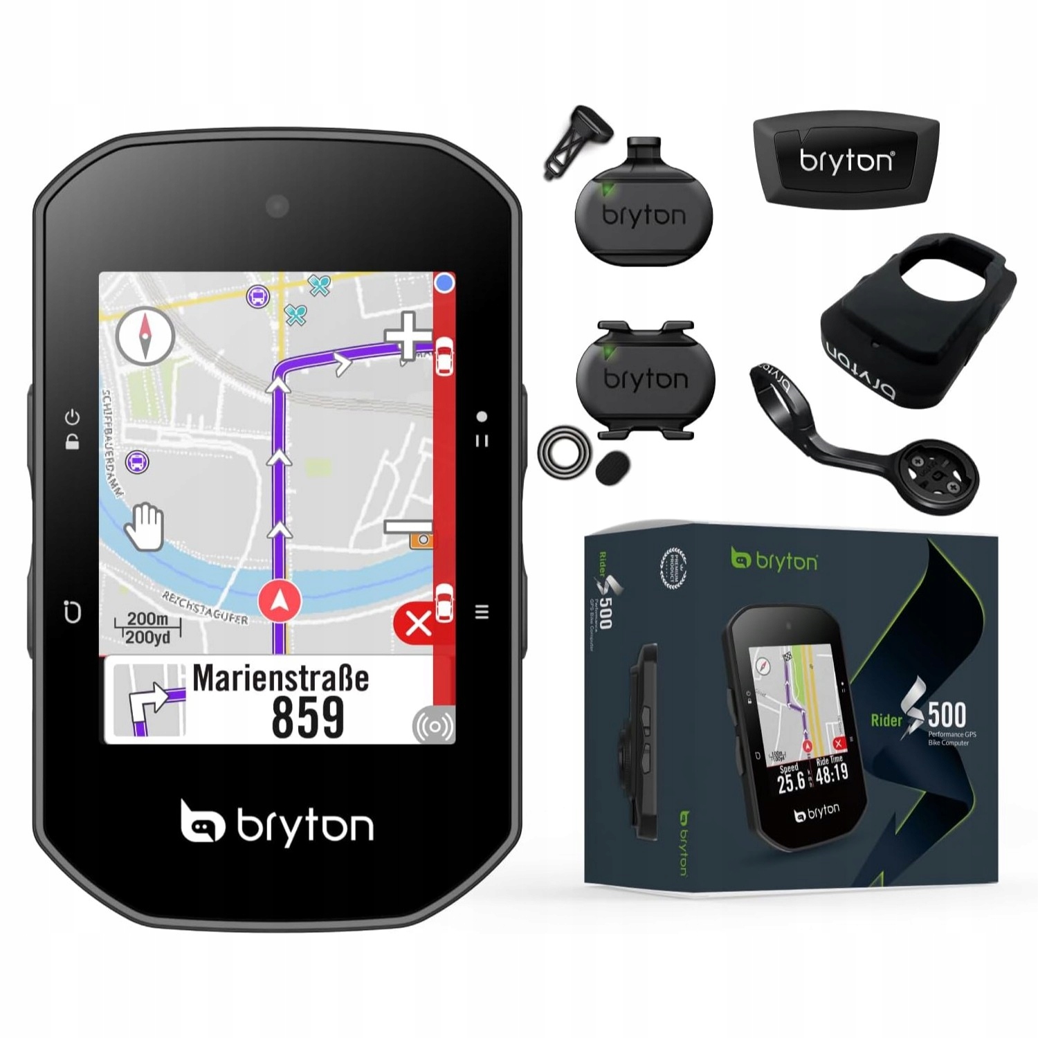 Bryton Rider S500 T | Оригинальный комплект производителя - беспроводной GPS велокомпьютер + комплект беспроводных датчиков HRM CAD SPD