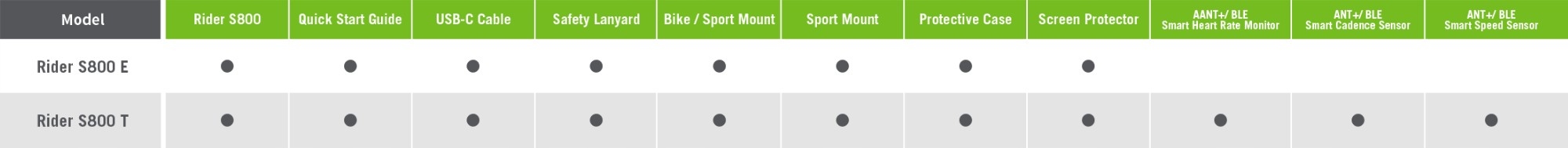 Rider S800, оснащенный большим 3,4-дюймовым дисплеем, использует интуитивно понятный графический интерфейс пользователя. интерфейс с понятными значками, включая как классический режим страницы велосипедного движения, так и графические режимы для просмотра данных о велосипедном движении в динамической многоцветной графической конфигурации.