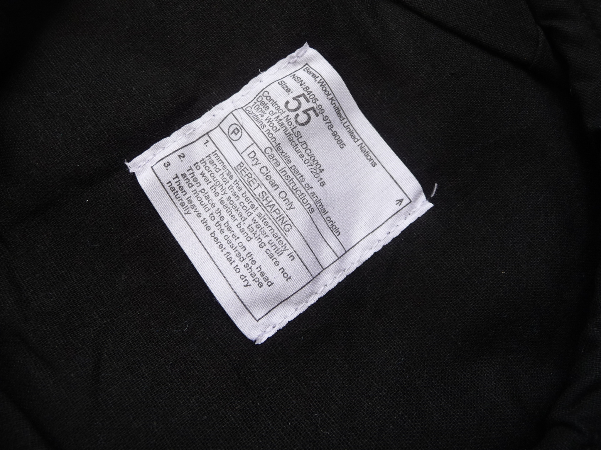 BRYTYJSKI BERET TŁOCZONY BŁĘKITNY UN ONZ UNITED NATIONS R 55 Z ODZNAKĄ