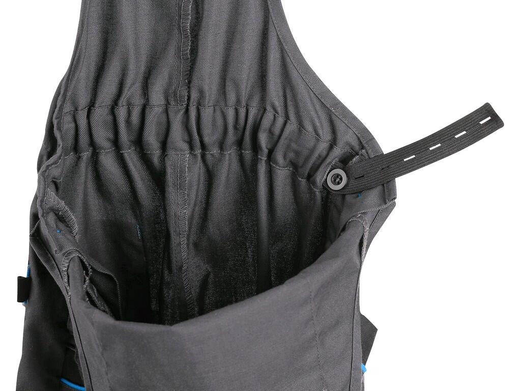 с пуговицей для регулировки размера, передние накладные карманы, сзади обычный карман. , усиленные колени, подтяжки сзади с резиновыми