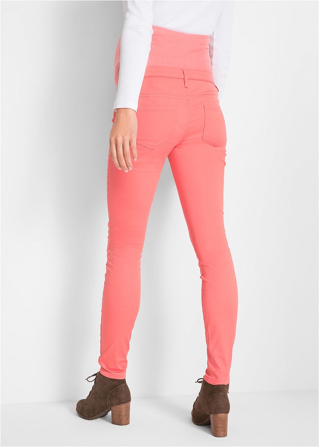 Оригинальные брюки для беременных BPC из коллекции BonPrix в цвете ДЫМЧАТЫЙ КОРАЛЛ как на фото под описанием, 3 передних кармана , 2 сзади, зауженные брючины, с тканевым поясом на животе. Внутри резинка с кнопкой регулировки.