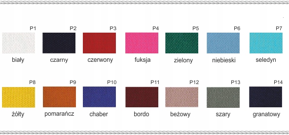 >Цвета: БЕЛЫЙ, ЧЕРНЫЙ, КРАСНЫЙ, ФУКСИЯ, ЗЕЛЕНЫЙ, СИНИЙ, СЕЛАДИН, ЖЕЛТЫЙ, ОРАНЖЕВЫЙ, ВАСИЛЬКОВЫЙ, БОРДОВЫЙ, БЕЖЕВЫЙ, СЕРЫЙ, ТЕМНО-СИНИЙ,