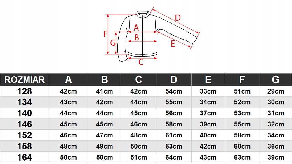 Размеры куртки измерены в горизонтальном положении: