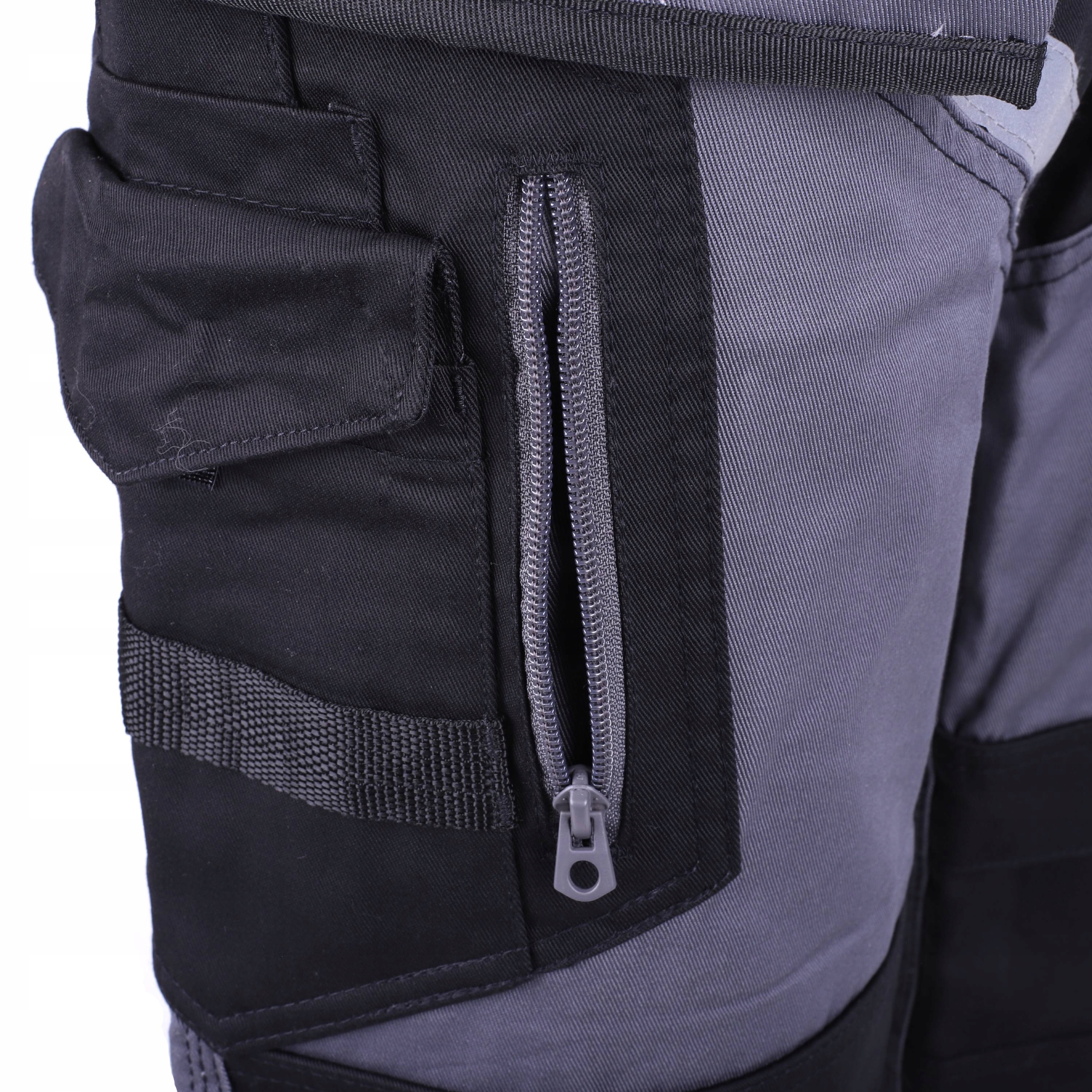 Рабочие брюки длиной до талии плотностью 270 г/м2 (35% хлопок, 65% полиэстер) черного и серого цвета со светоотражающими полосами, улучшающими видимость сотрудника во время работы.