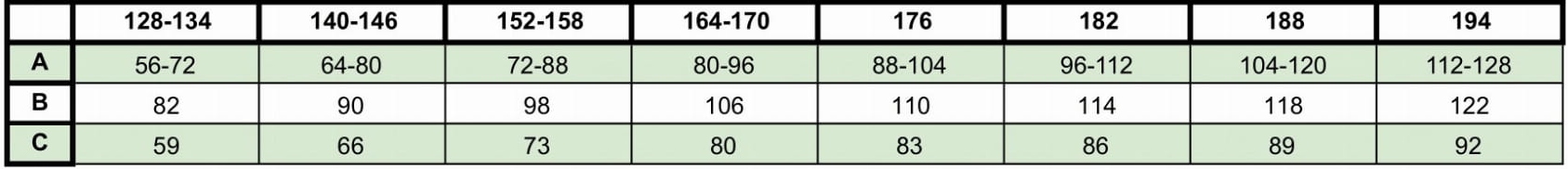 Как читать таблицу размеров? Ниже мы представляем, за что отвечает каждый параметр.