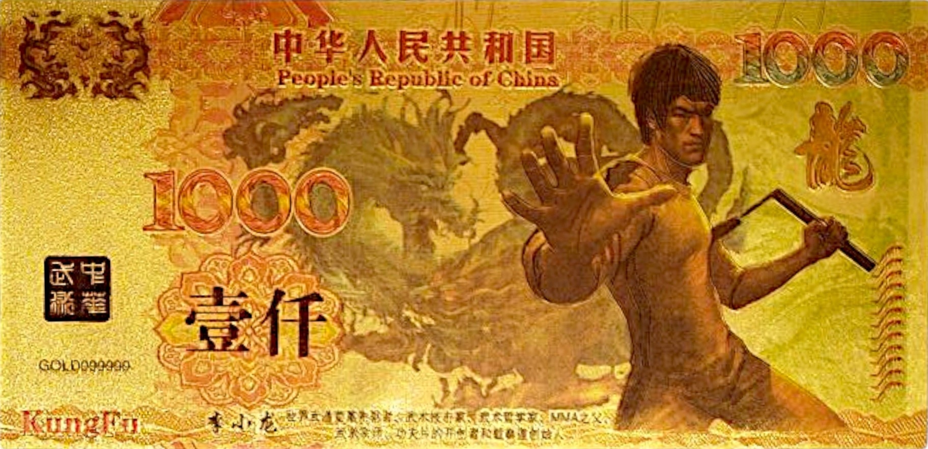 банкнота, содержащая золото, с ПВХ h1> Брюс Ли, с ПВХ h1>