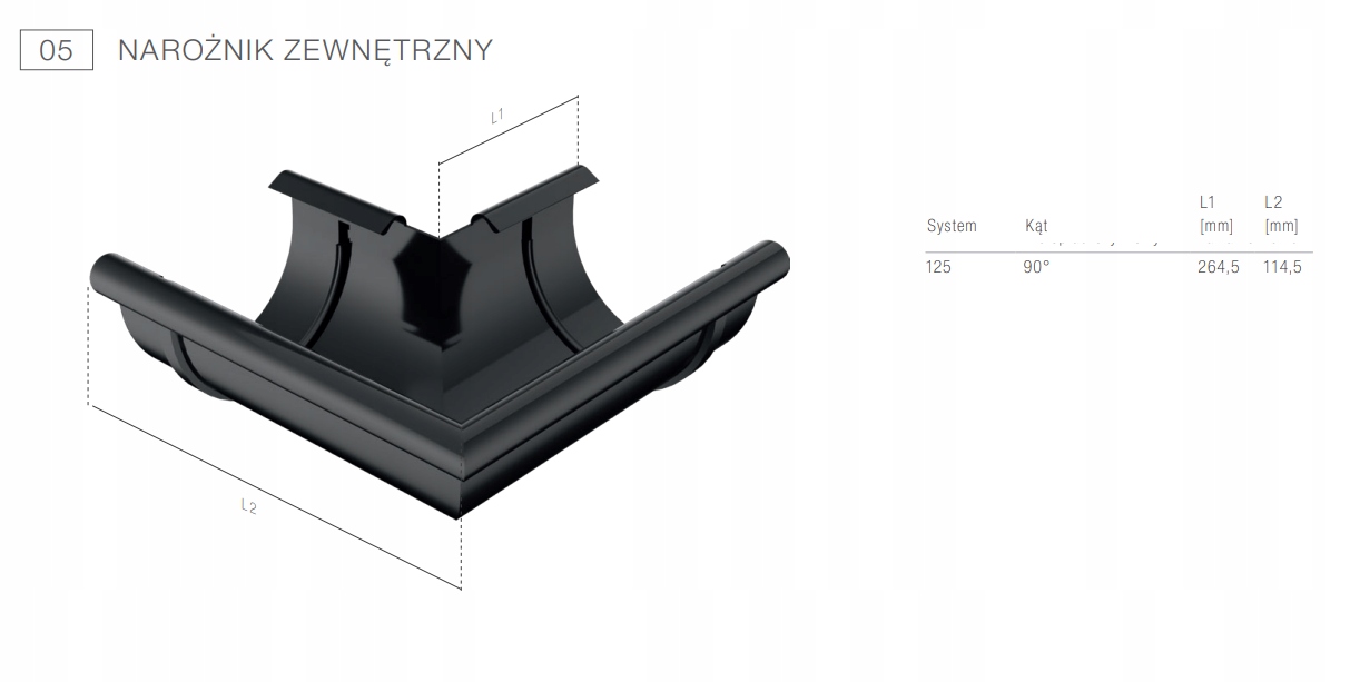 BRYZA ПВХ ЗОВНІШНІЙ КУТ 125 ЧОРНИЙ ral 9005