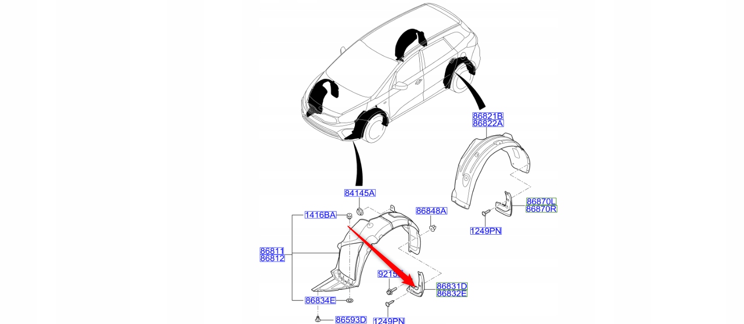 Брызговик передний правый Kia Carens 2016 - 2018