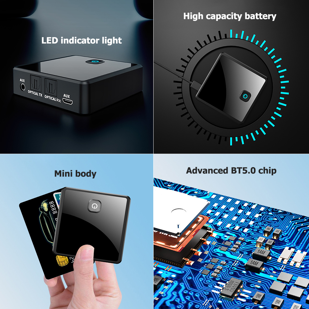 - BT -приемник передатчика: BT 2 в 1 аудио -передатчик, легкий и компактный, оснащенный светодиодным индикатором и 3,5 мм и оптическим сокетом, для множества вариантов вывода/ввода, подходящие для просмотра фильмов, домашних событий и т. Д. Беспроводной отправляйте музыку в наушники или динамик (до 2 устройств одновременно).