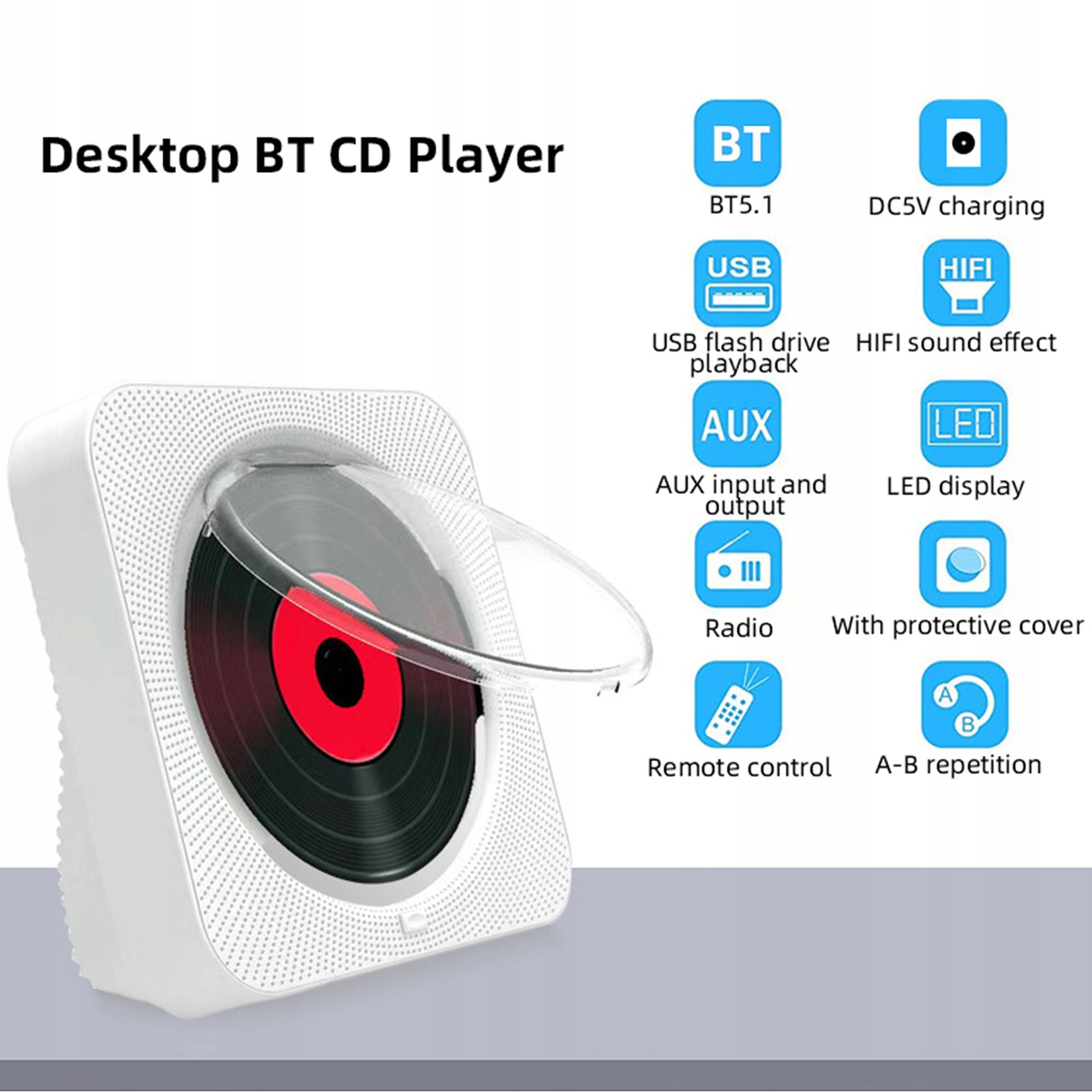 BT5.1 CD Player Portable Music Player FM Radio Desktop CD Runner AQ