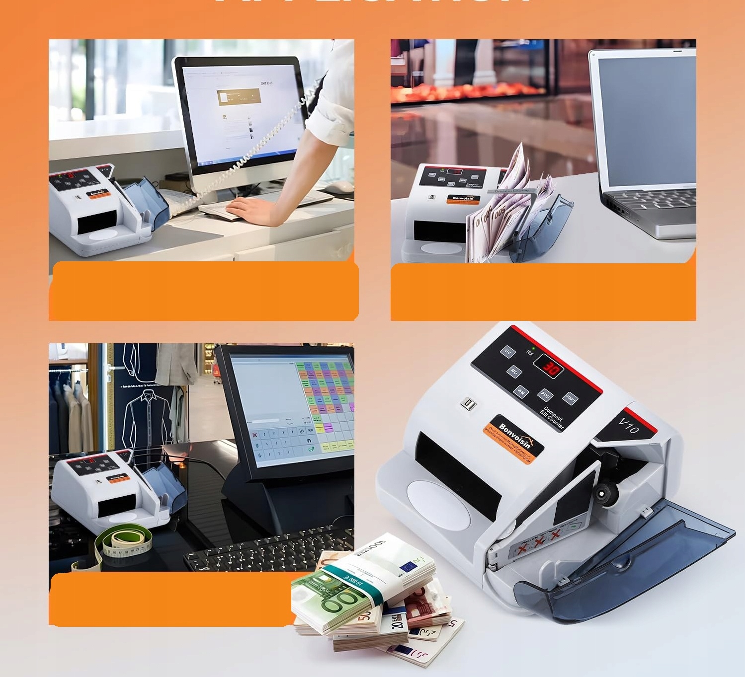 Для обеспечения упорядоченного и безопасного пересчета Счетчик Bonvoisin V10 оснащен инновационными решениями, такими как запирающийся ящик, который предотвращает рассыпание банкнот после пересчета. Специальный держатель для банкнот позволяет сохранять порядок, что экономит время и повышает эффективность. Кроме того, устройство дополнено расширенными функциями обнаружения фальшивых банкнот, которые работают благодаря использованию технологий UV (ультрафиолетовая), MG (магнитная) и WM (водяная маркировка). Благодаря этим функциям вы можете быть уверены, что ваши транзакции полностью безопасны, а открытый процесс проверки подлинности банкнот проходит бесперебойно.