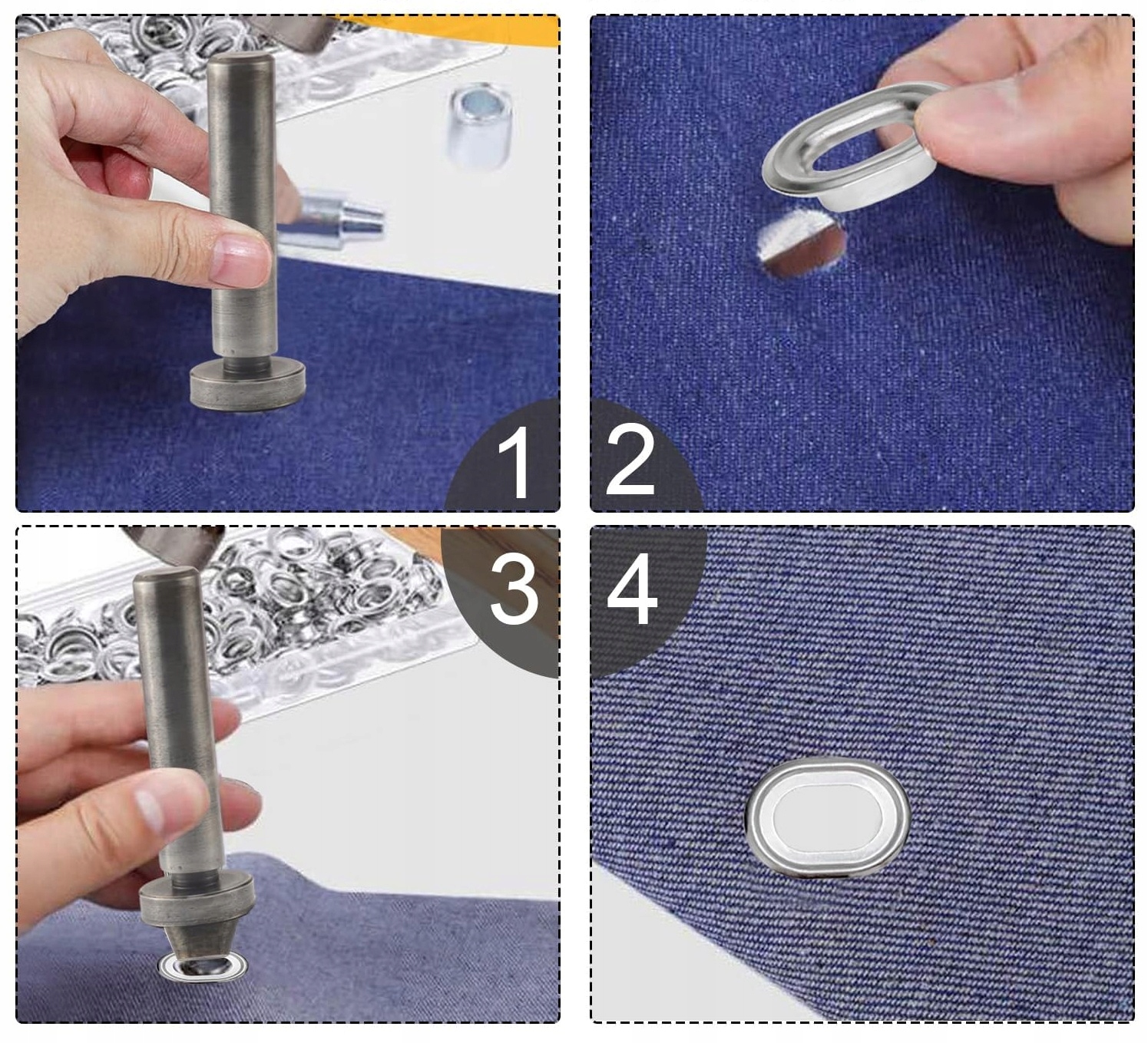 Инструменты для изготовления петель: овальные люверсы можно прикрепить гайками. Просто используйте дырокол, чтобы проделать отверстия в материале, а затем используйте монтажный инструмент, чтобы прикрепить проушины. Простой в использовании и переноске, практичный и удобный, с ручкой, обеспечивающей комфортную работу.
