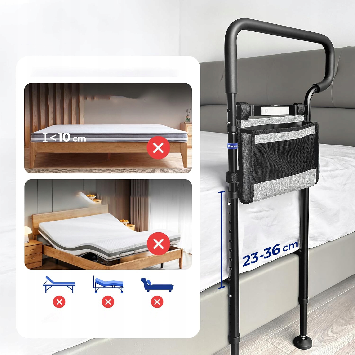 Подлокотники покрыты мягкой нескользящей пеной, которая изолирует твердость стали и электростатические заряды в сухих условиях. Дополнительный ремень безопасности повышает защиту, предотвращая перемещение опоры. Изделие легко установить без инструментов, а его конструкция обеспечивает индивидуальную подгонку. ПРИМЕЧАНИЕ. Модель C3 PRO не подходит для мобильных, раскладных диванов-кроватей или кроватей с нестандартным каркасом с деревянными направляющими или ступеньками — перед покупкой проверьте совместимость.