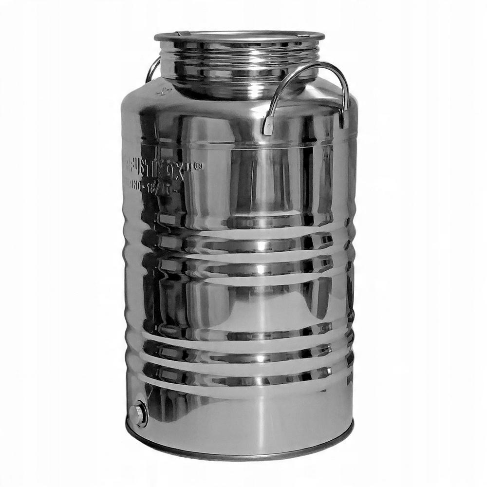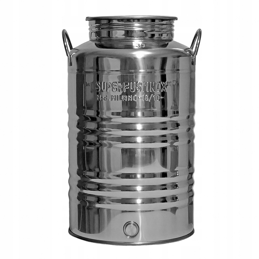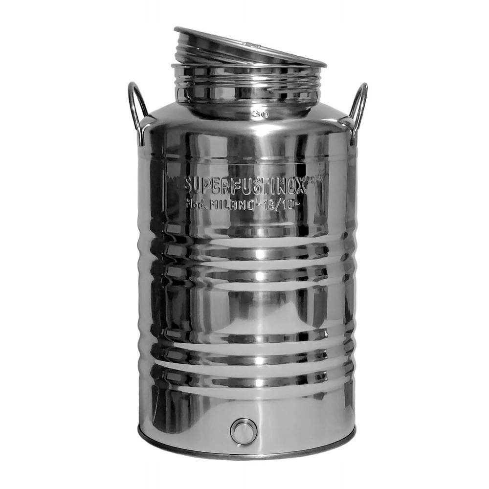 Высококачественная бочка изготовлена из прочной нержавеющей стали и вмещает 30 литров жидкостей или сыпучих пищевых продуктов.