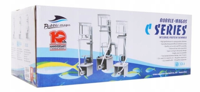 Bubble Magus C-3.5 — модель протеинового скиммера, предназначенная для резервуаров с морской водой емкостью от 100 до 300 литров. Благодаря использованию ряда современных решений данная модель является одной из самых эффективных и надежных на рынке. Коническая камера пеногасителя вместе с крыльчаткой игольчатого насоса эффективно генерируют мелкие пузырьки воздуха, которые попадают в вместительный грязевой резервуар.