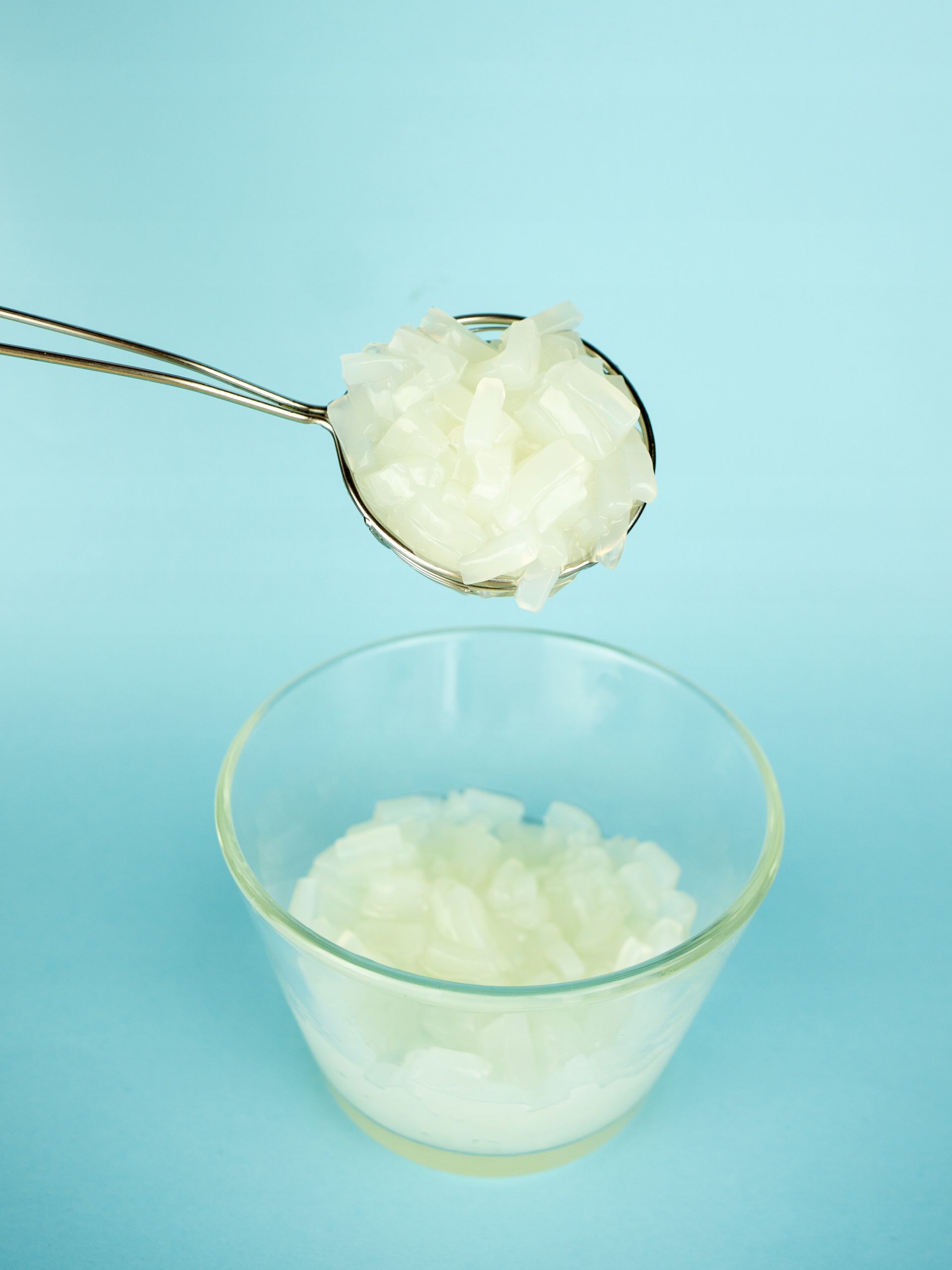 Идеальное дополнение к мороженому, вафлям, йогуртам, панна котте или желе. Кокосовое желе придает текстуру и тонкий освежающий оттенок десертам.