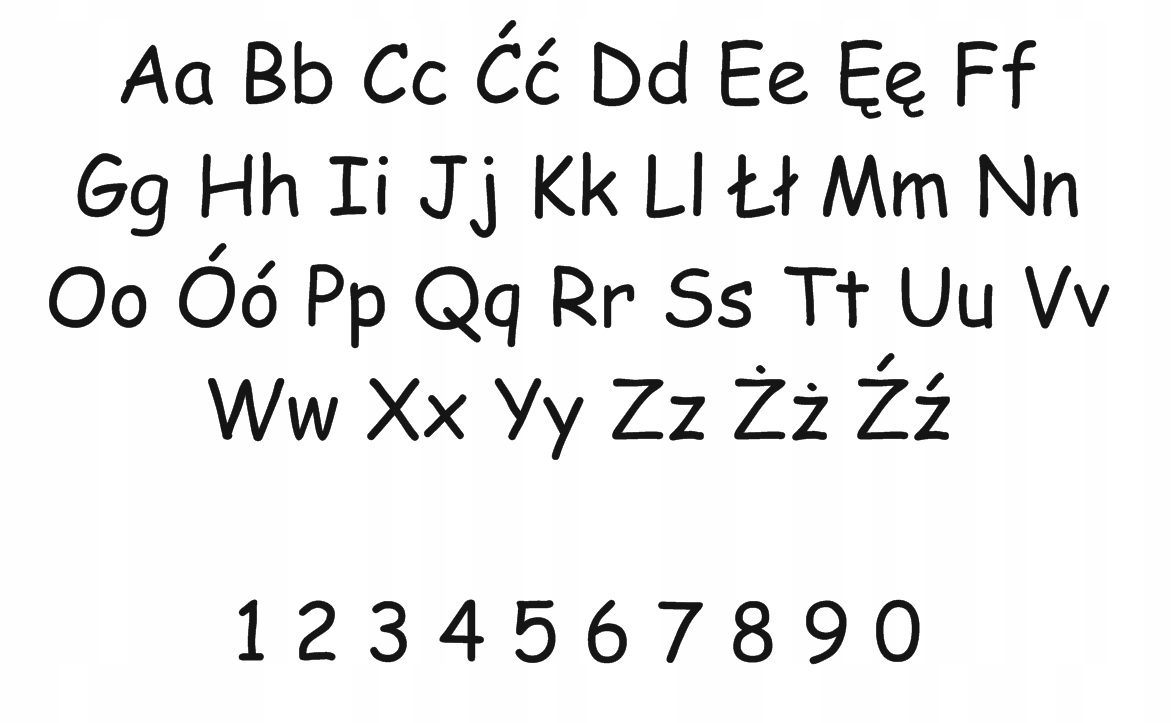 Высота измерена для A — доступные буквы и цифры пропорциональны шаблону шрифта, представленному ниже — шрифт: Comic Sans MS