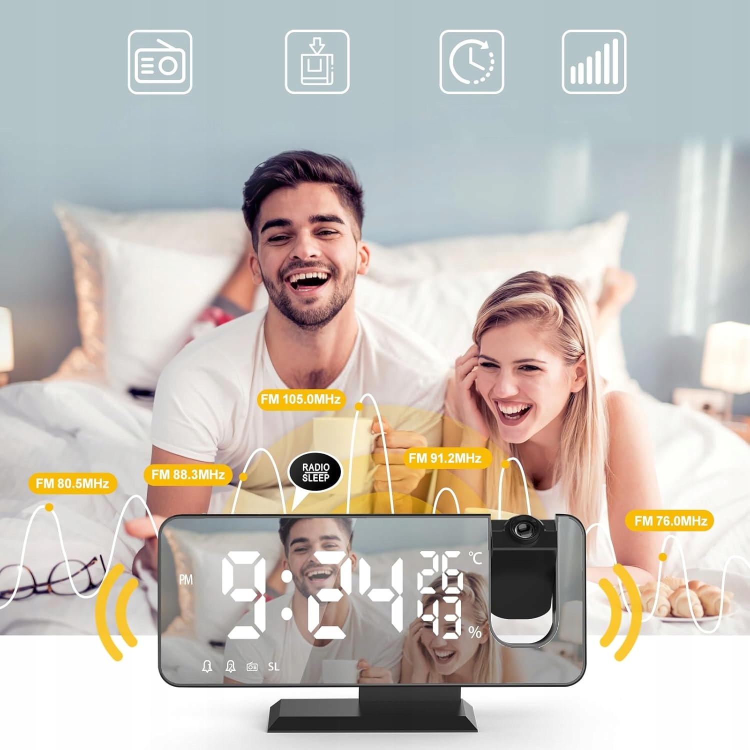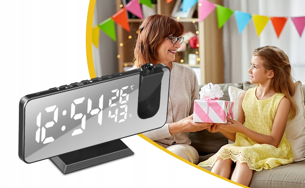🪄 Особенности 🍭 h2> Сигнализация часов с проектором 180 ° Цифровой ночной радио 2/ 24H H2>