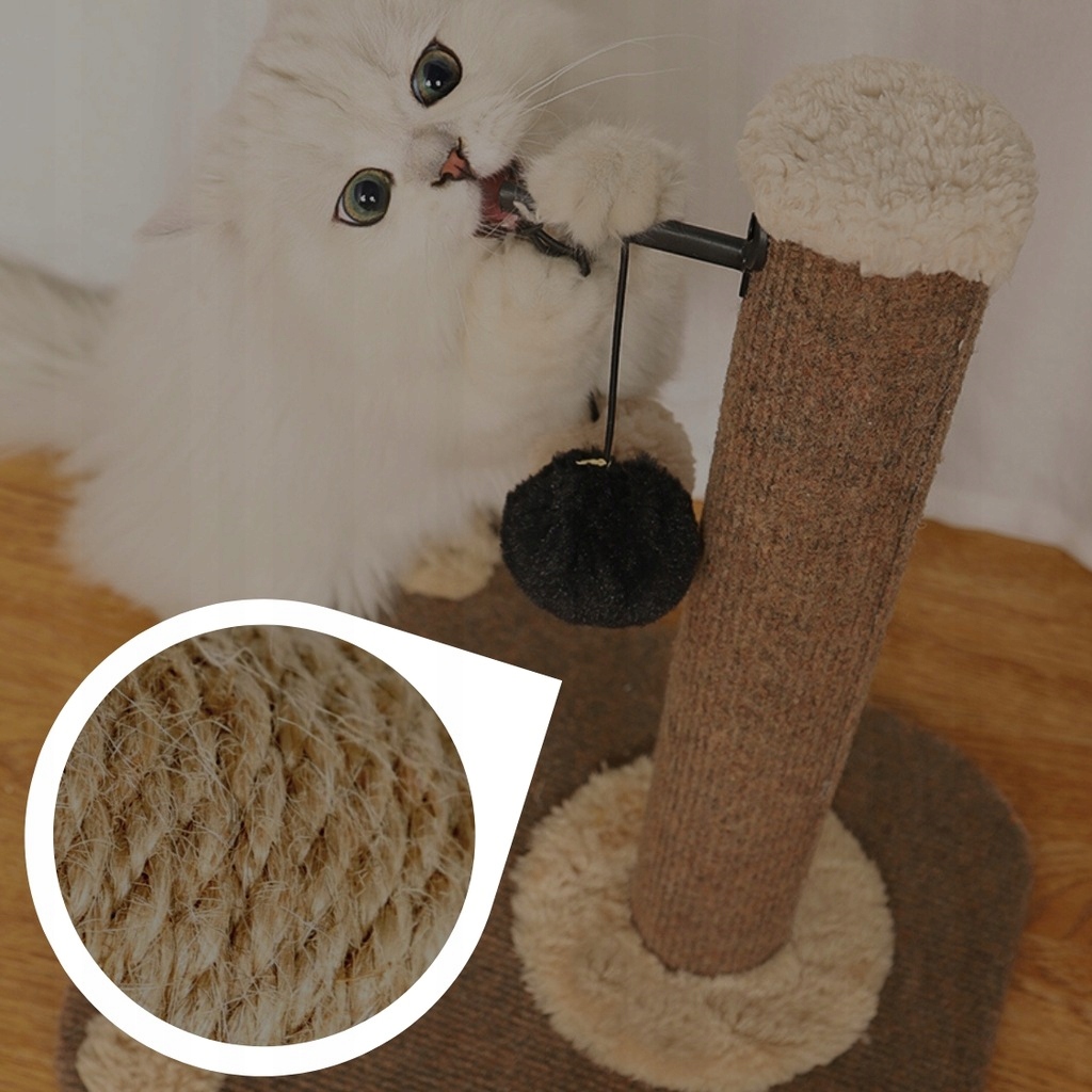 Вам больше не придется беспокоиться о повреждении и быстром износе когтеточки вашей кошки! Наша когтеточка – это гарантия механической прочности и устойчивости к истиранию, поэтому ваш пушистый ребенок может наслаждаться свободной игрой, не беспокоясь о повреждении инвентаря. В комплект также входит мячик на веревке, который доставит вашей кошке массу удовольствия и развлечений. Если сизалевая веревка повреждена, не обязательно покупать новую когтеточку – изношенную деталь можно легко заменить на новую.