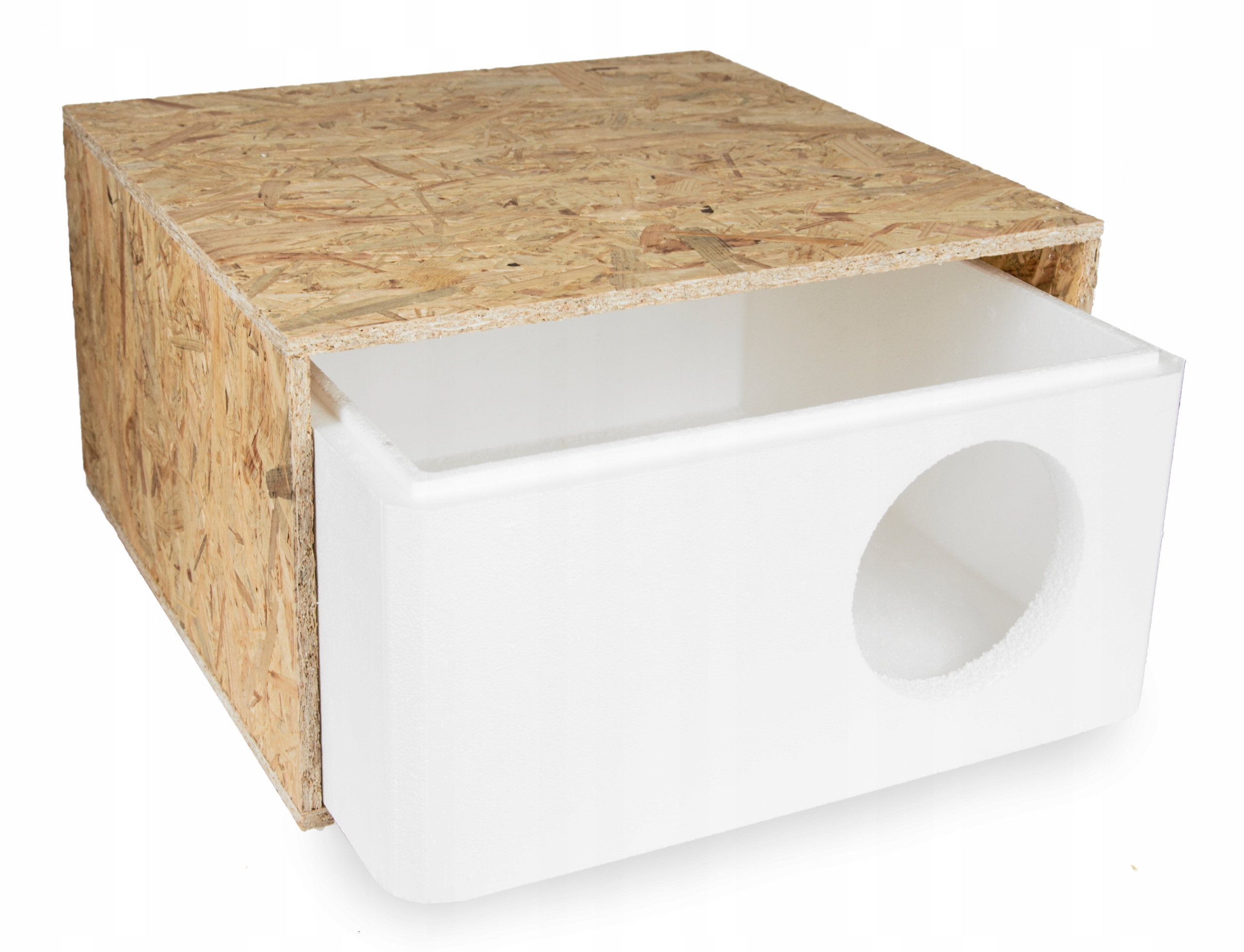 Предлагаемый домик обеспечивает кошкам тепло и защиту от мороза. Это идеальное решение для свободноживущих кошек, которые ищут приют. Оболочка пенопластового ящика из плиты OSB обеспечивает еще большую защиту от ветра, дождя, снега или мороза. Он обеспечивает надежное укрытие для кошек – его точно не продует от ветра и будет устойчив к повреждениям. Он водонепроницаем, а крышу можно дополнительно покрыть рубероидом. Благодаря ножкам внизу капюшон не прилипает прямо к земле.