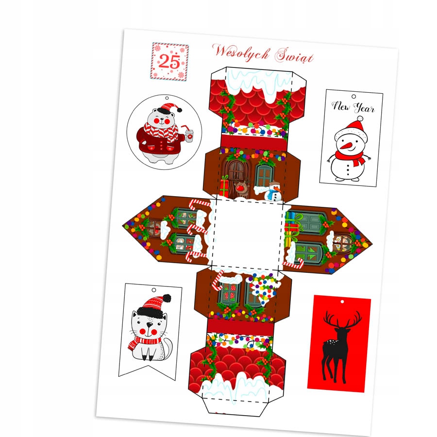 Вы можете положить сладости или небольшие подарки в дом. Идеальная альтернатива для детей, диверсифицируя время ожидания желаемого Рождества. У них есть линии, которые следует разрезать, и после чего вырезанные дома должны изгибаться.