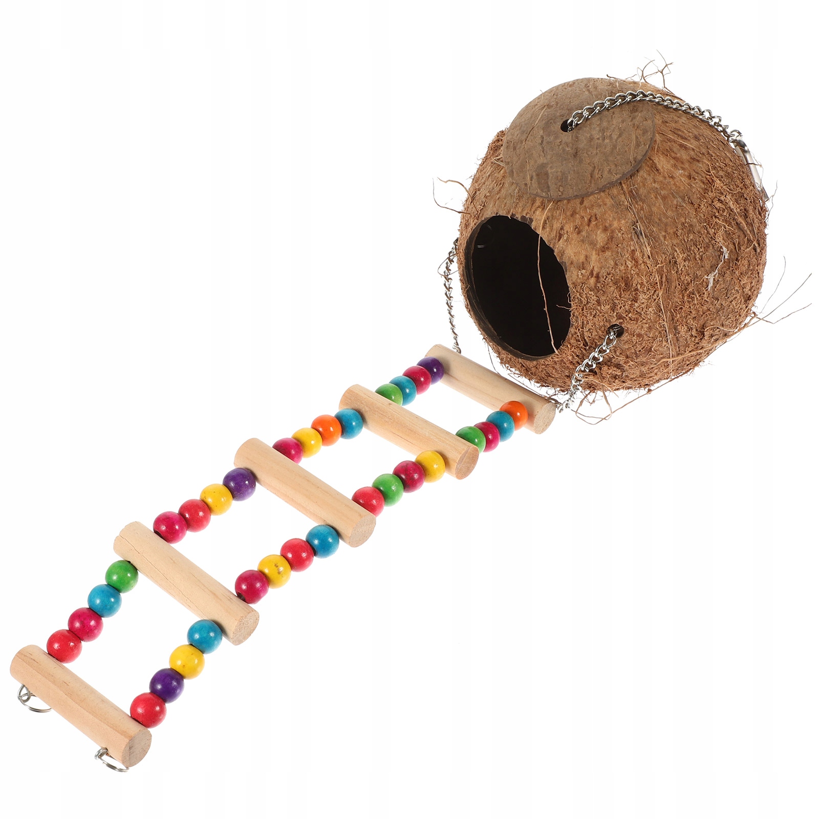 Убежище из скорлупы кокоса с лесенкой ПОДВЕСНАЯ ИГРУШЕЧНАЯ ЛЕСТНИЦА ДЛЯ РЕПТИЛИЙ ДЕКОРАТИВНАЯ РЕПТИЛИЯ