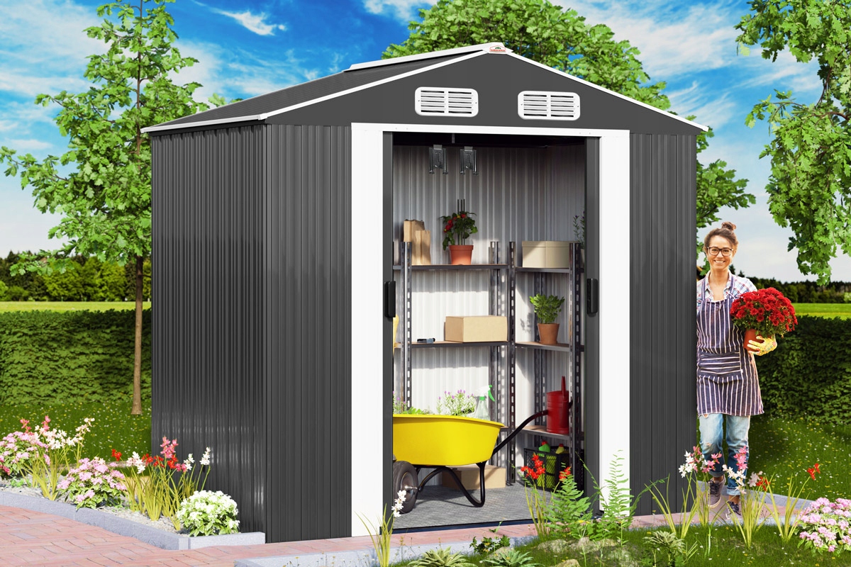 Сад с двускатной крышей идеально подходит для тех, кто хочет хранить все свои садовые инструменты и оборудование в одном месте, в безопасности и сухости. Благодаря большой просторной площади садовая беседка предлагает достаточно места для газонокосилки, барбекю, садовой мебели, инструментов и всего другого садового инвентаря.