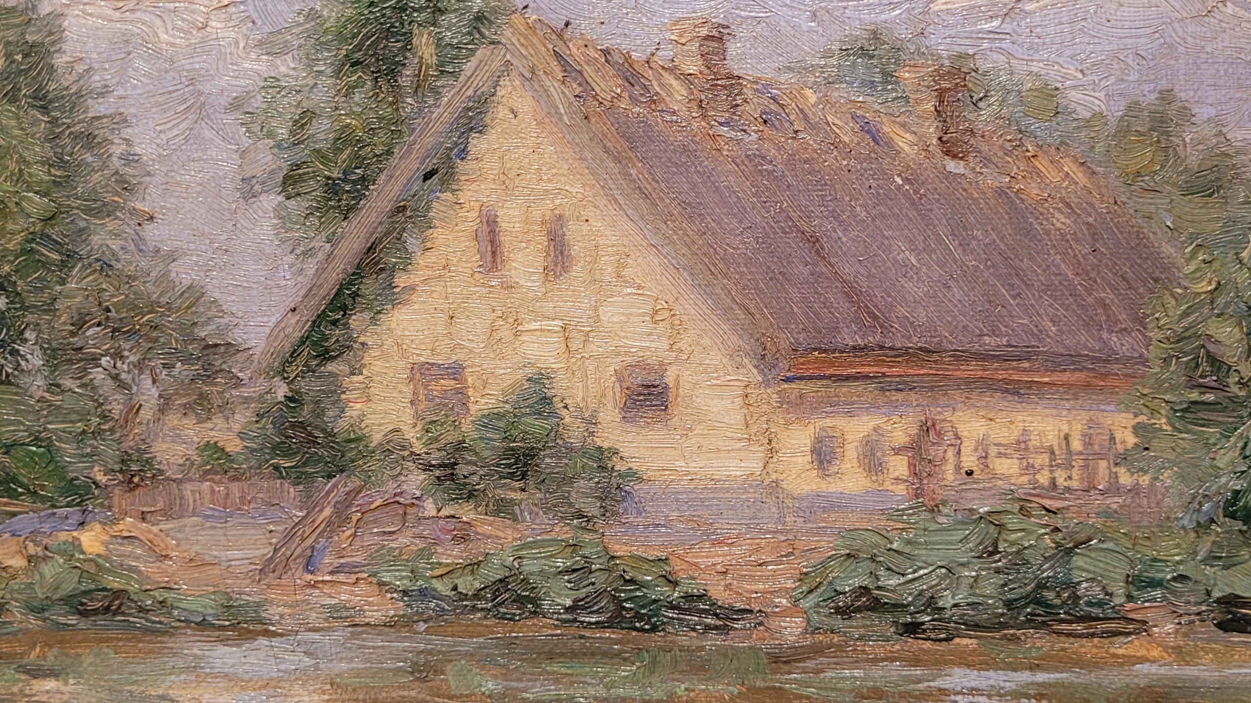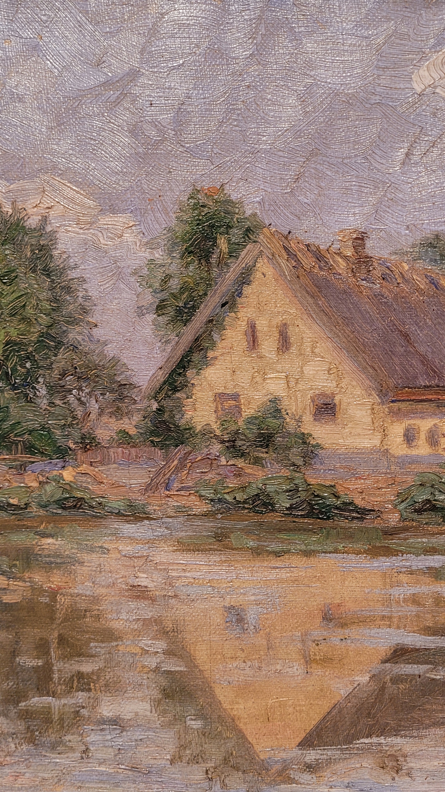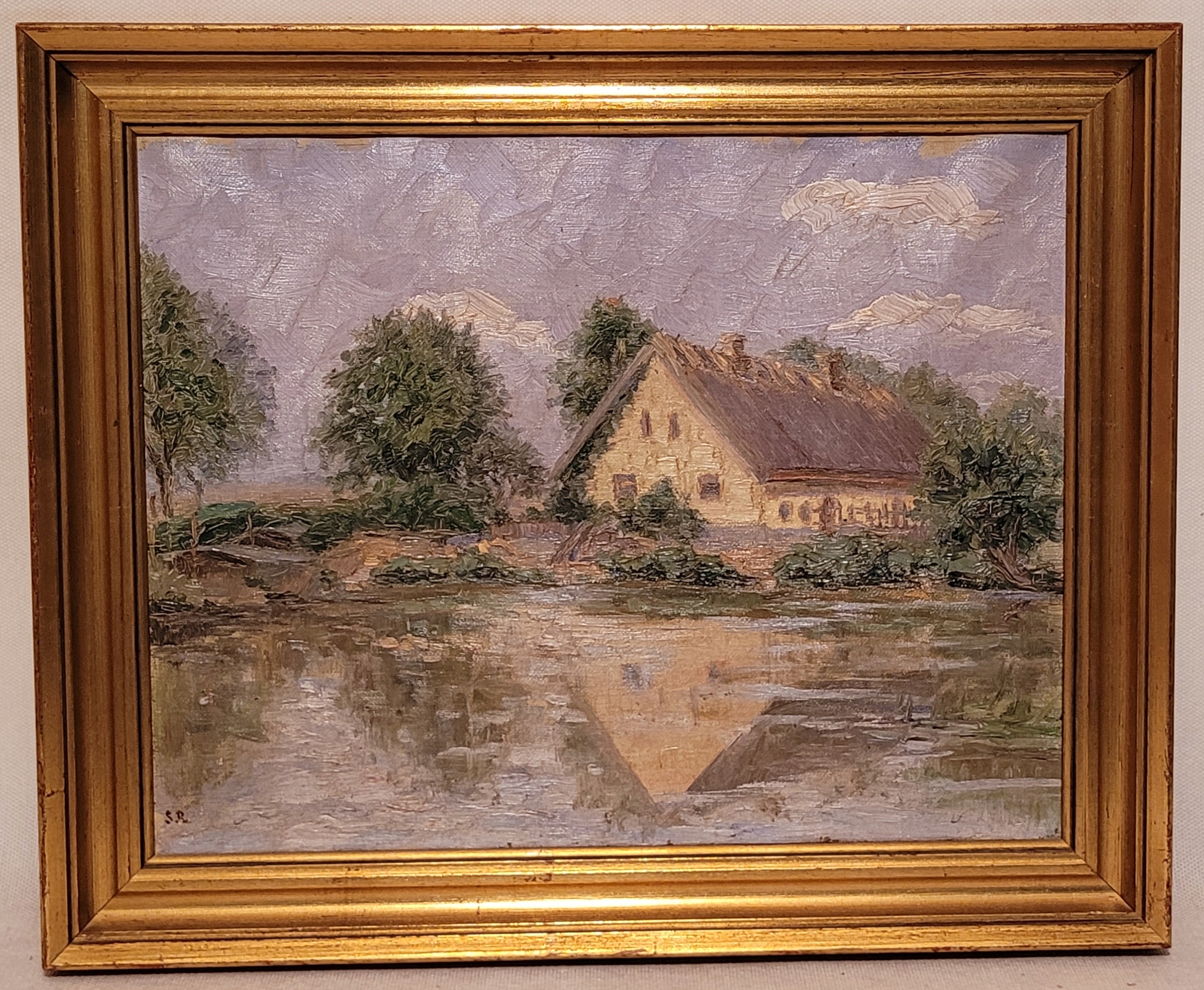 «Дом на пруду», старая, подписанная нефтяная картина.