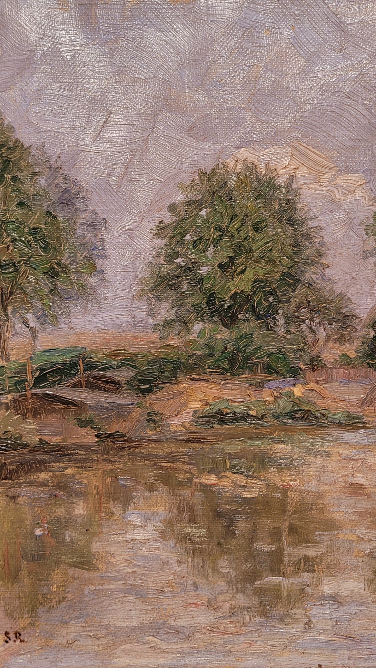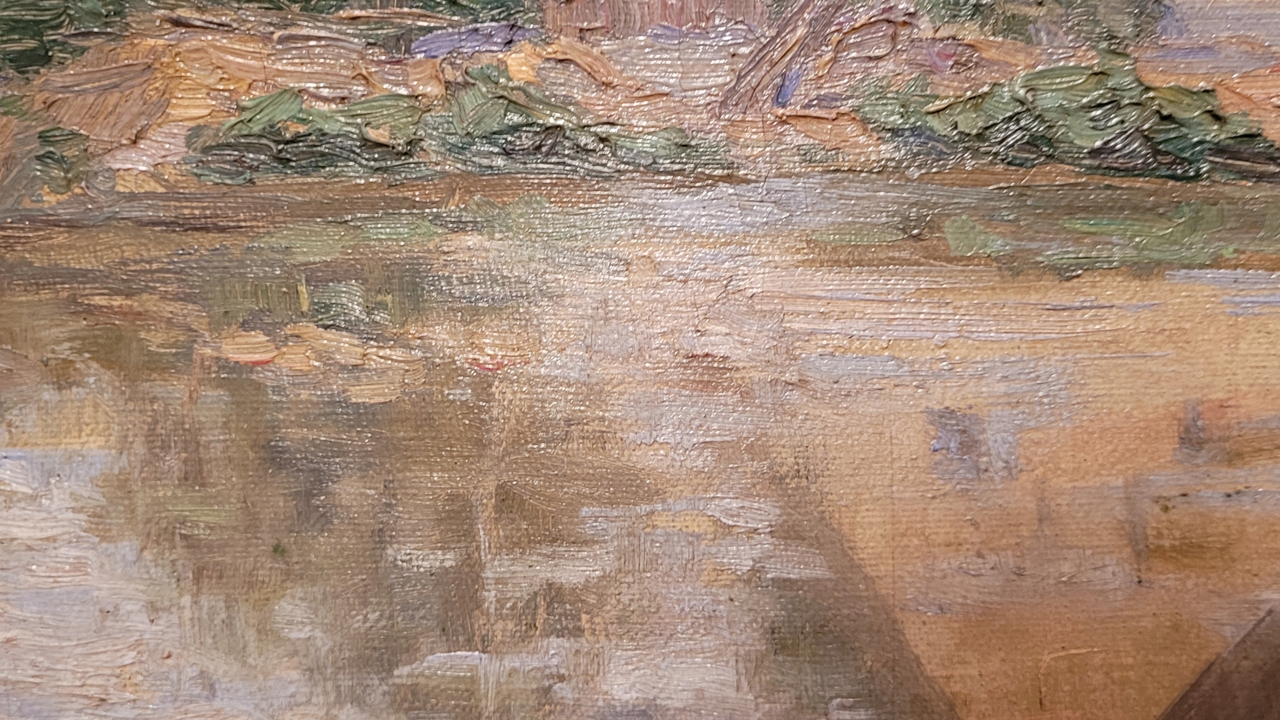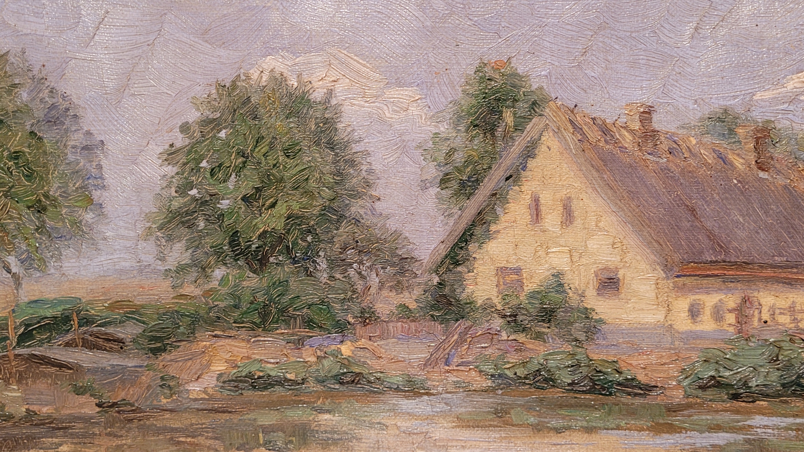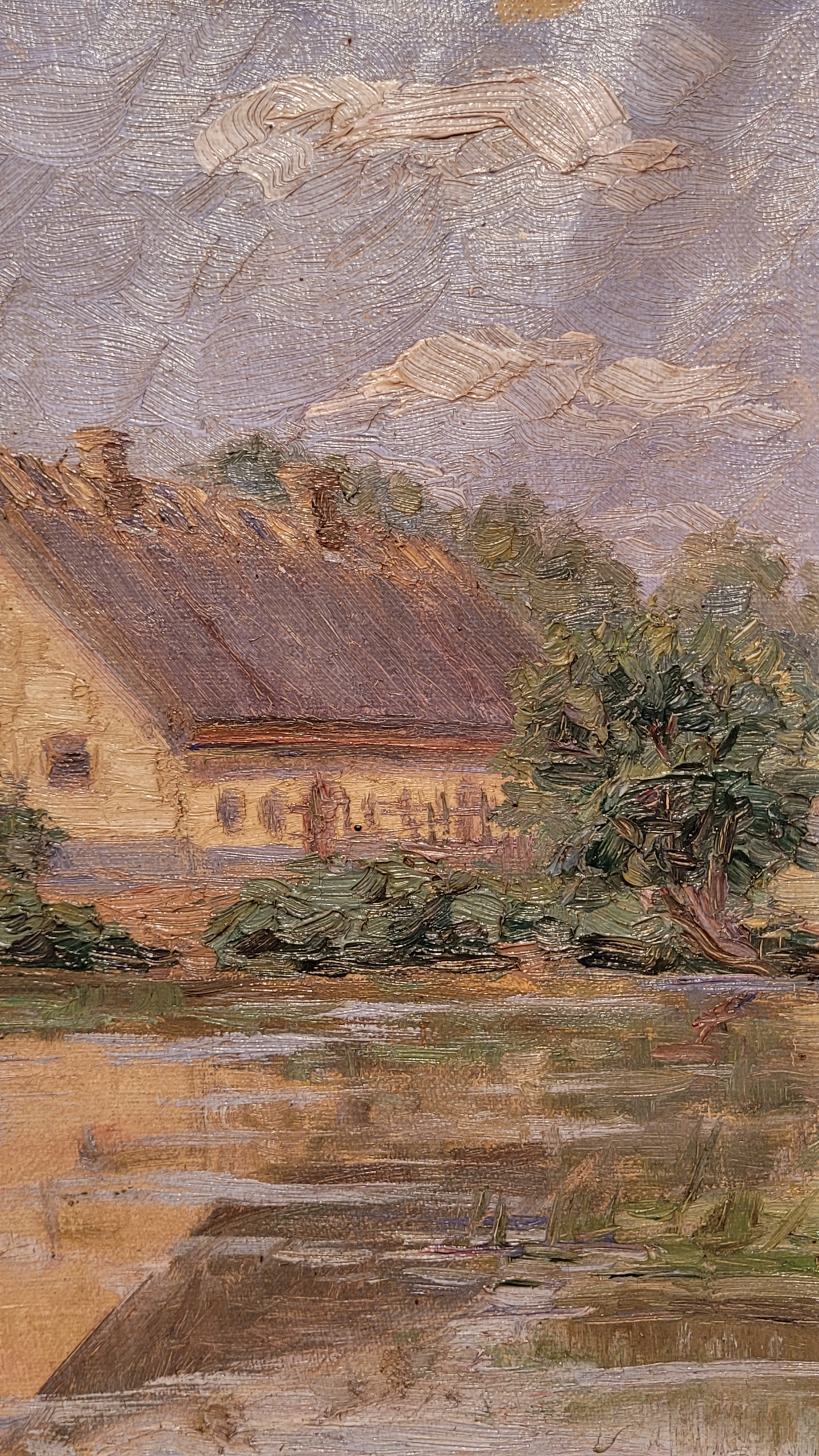 «Дом на пруду», старая, подписанная нефтяная картина.