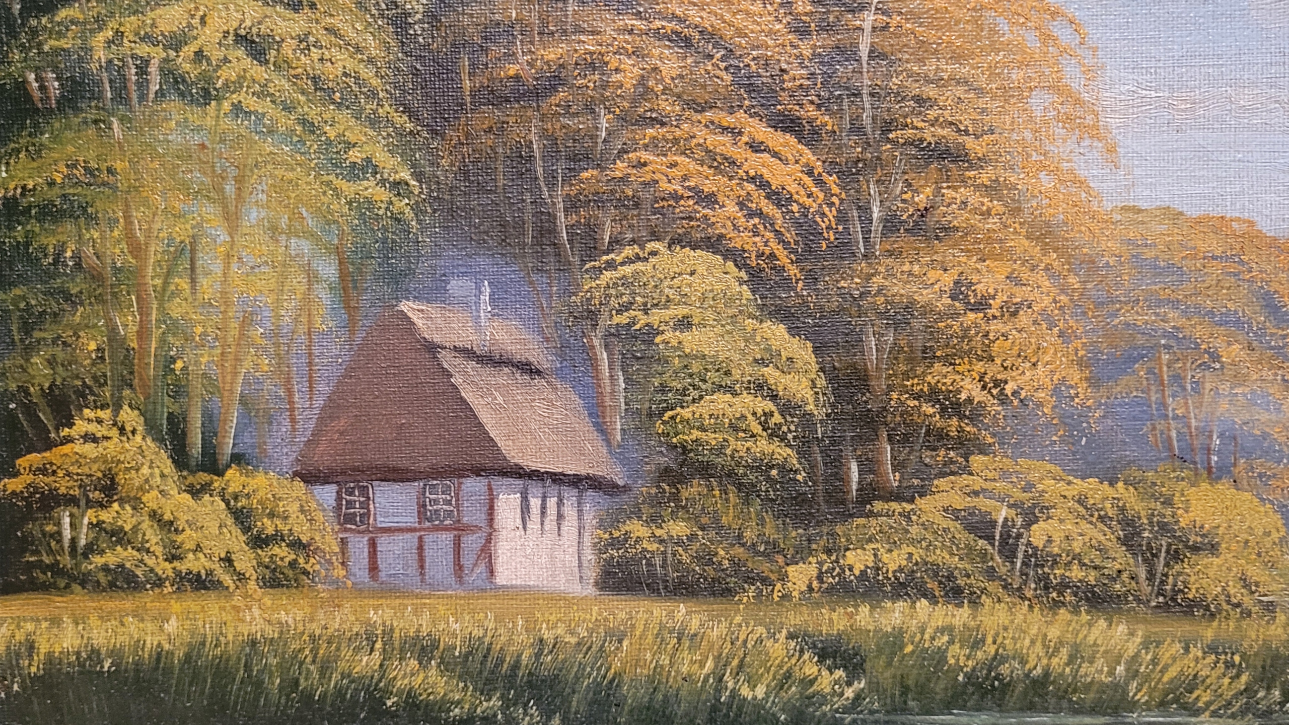 Объект продажи - красивый старый нефтяной картинок «Дом над лесным озером».