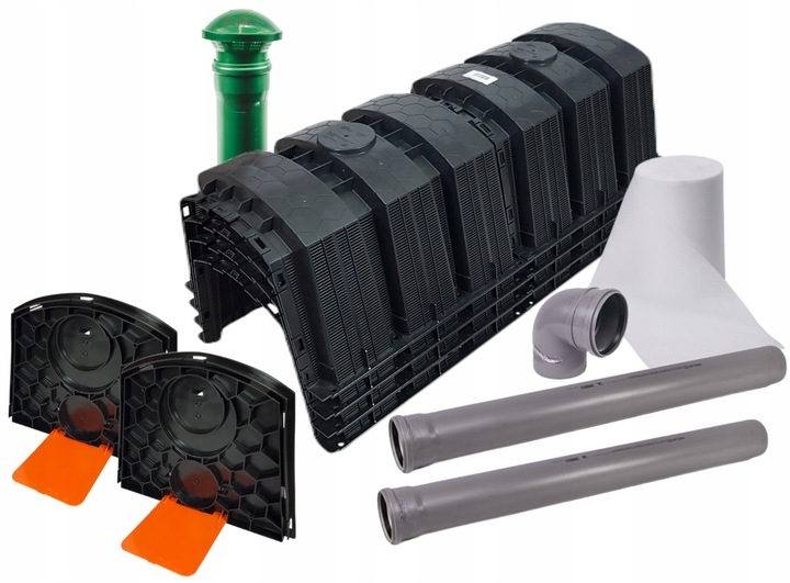 ✔️Станция очистки сточных вод, оборудованная , оборудована дренажным дренажем из графа-туннелей - по 130 л каждый - Это решение, предназначенное для небольшого участка, где нет места для традиционного дренажа,