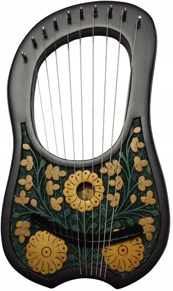 HS Lyre Harp 10 Металлический струнный инструмент Shesham Wood/Lyra Harps/Lyre Harfe/Arpa (ЧЕРНЫЙ ЦВЕТОЧНЫЙ ДИЗАЙН)