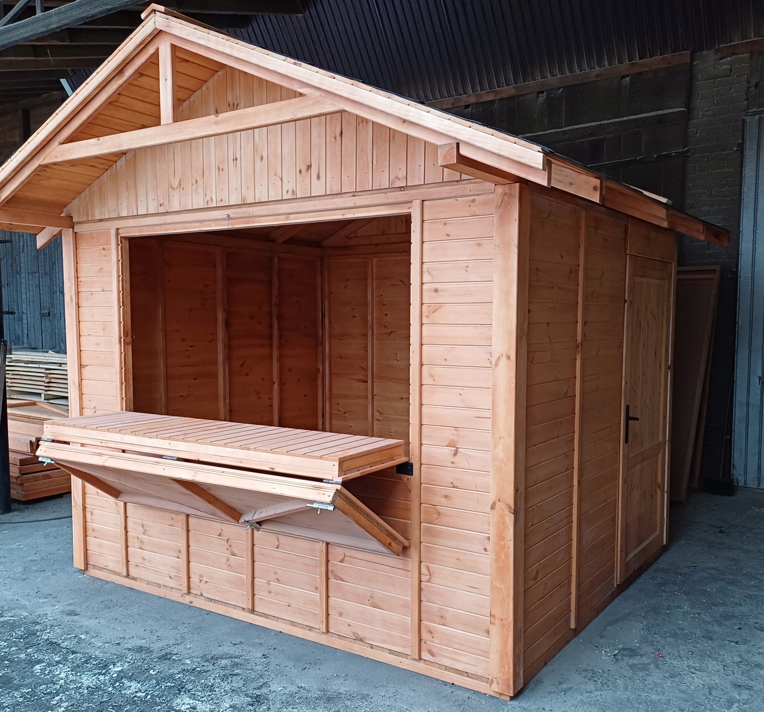 Торговый дом выполнен из сушеной, непропитанной древесины. Чтобы обеспечить более длительный срок службы древесины, дом следует покрасить пропиткой или маслом сразу после сборки.