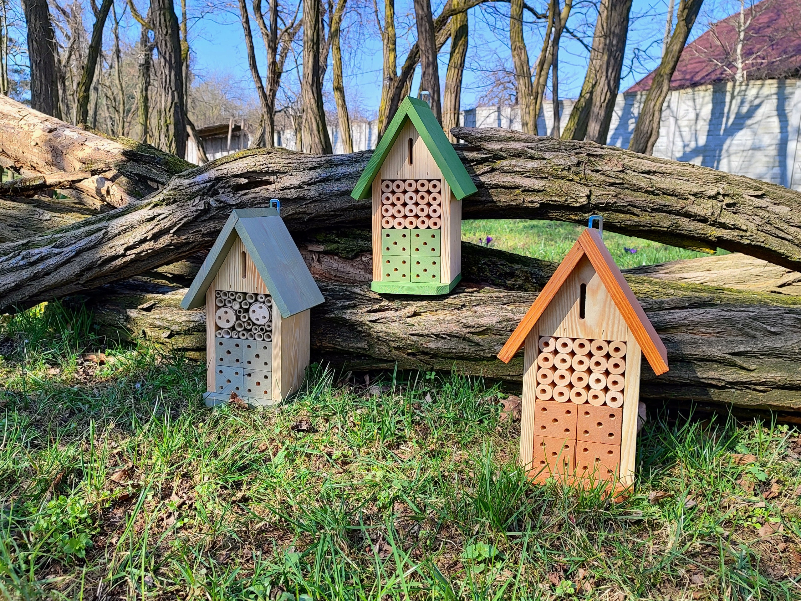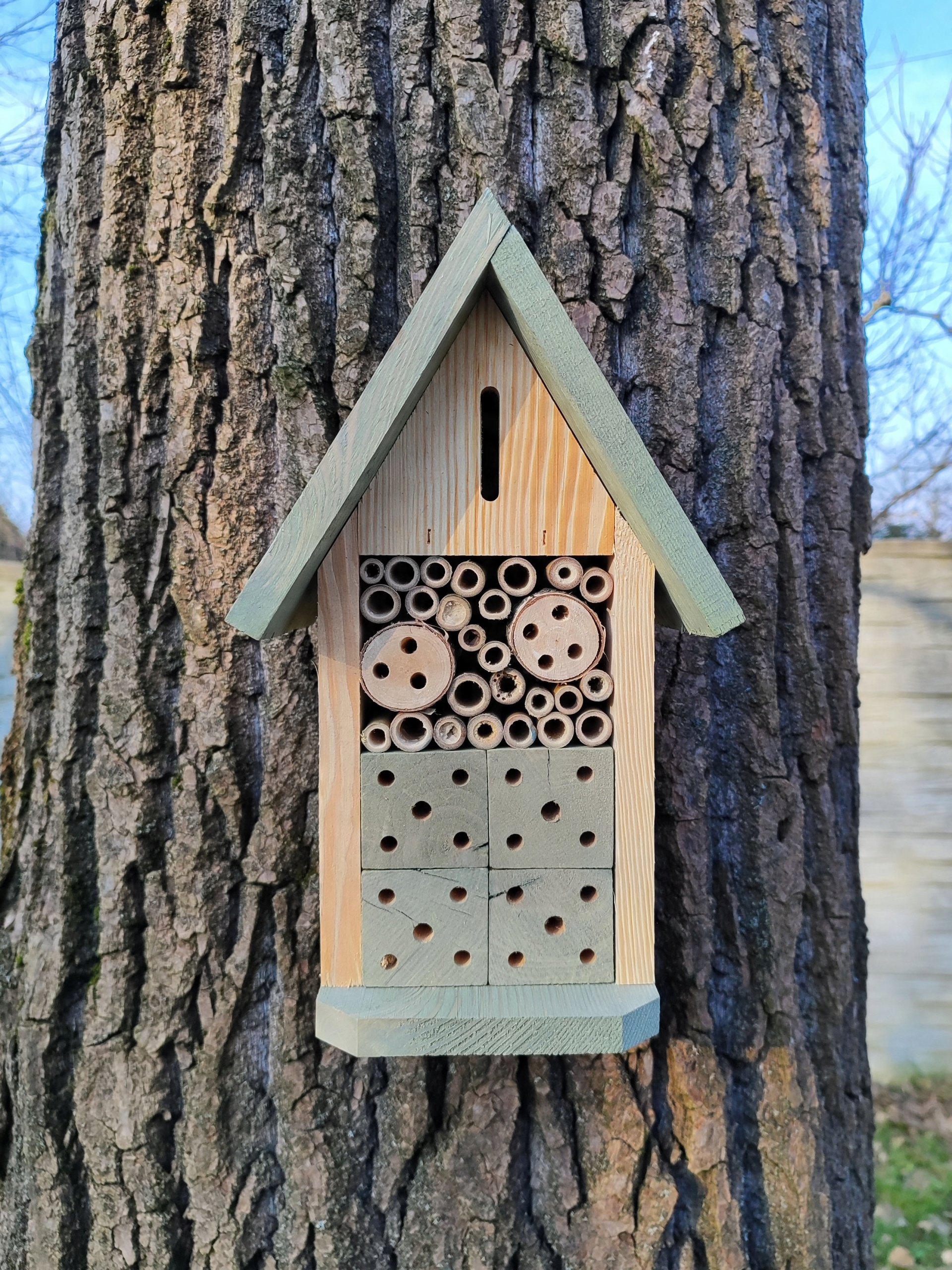 Домик также можно повесить на дереве, в туннеле или теплице. Лучше всего размещать дом рядом с растениями, которые предстоит опылять насекомыми.