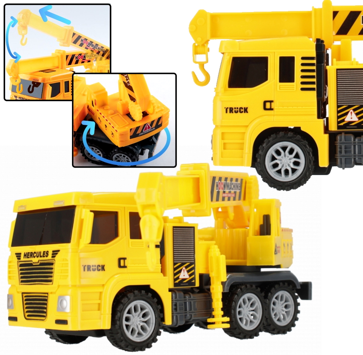 На машине установлен подвижный кран. вращающаяся платформа,которая станет отличным развлечением для каждого маленького мальчика.