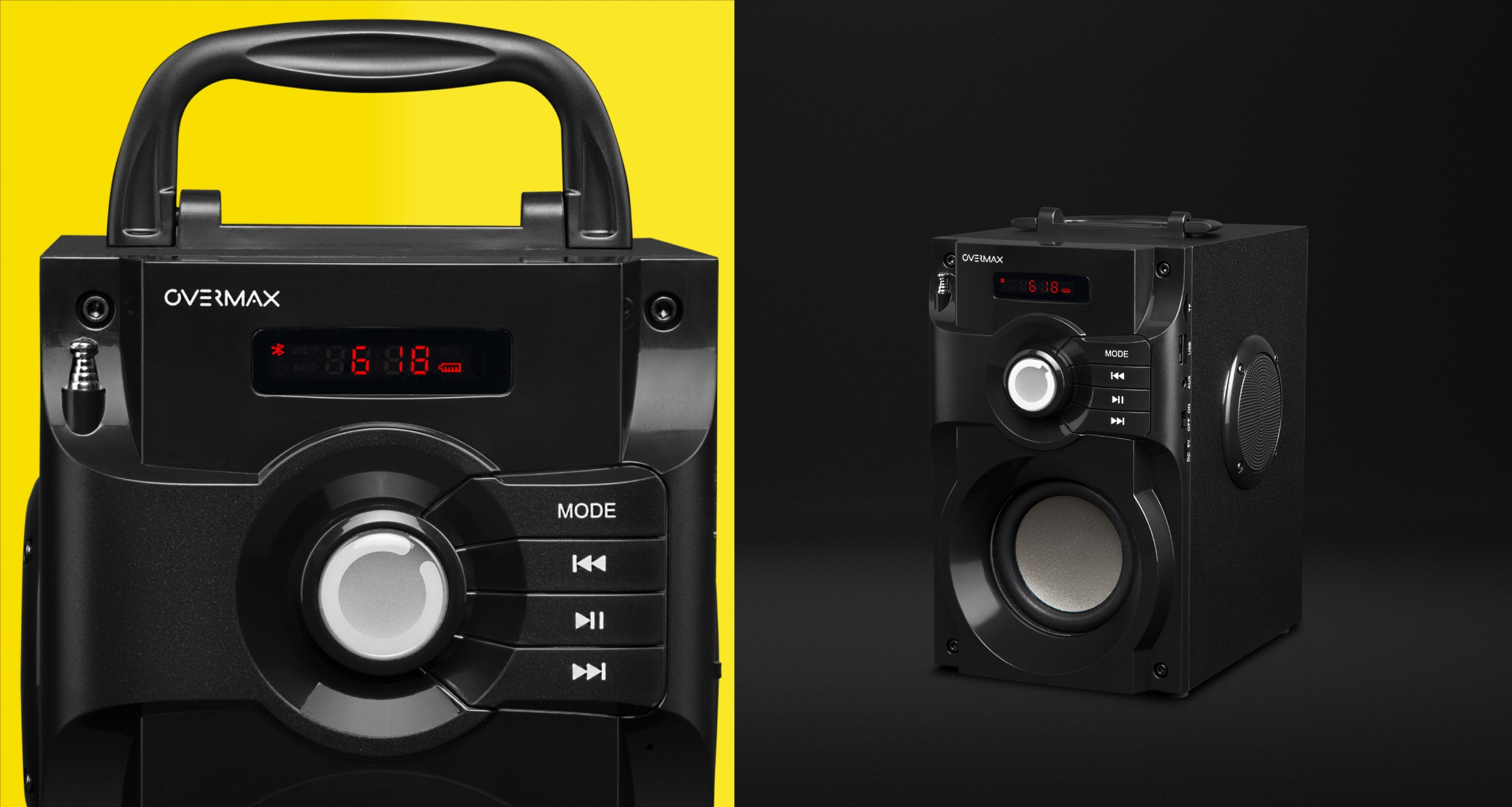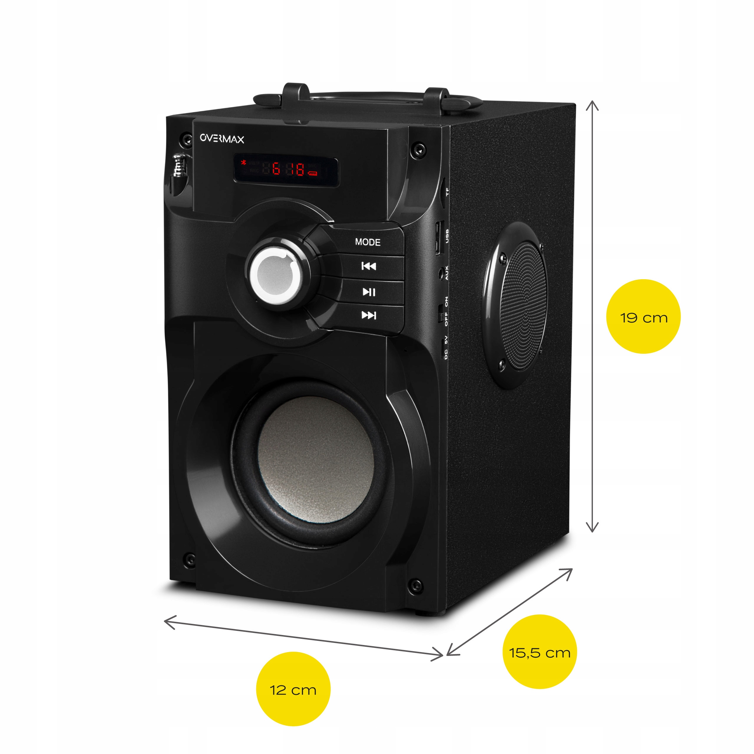 Беспроводная колонка Overmax Soundbeat 2.0 оснащена тремя высококачественными динамиками общей среднеквадратичной мощностью 15 Вт: