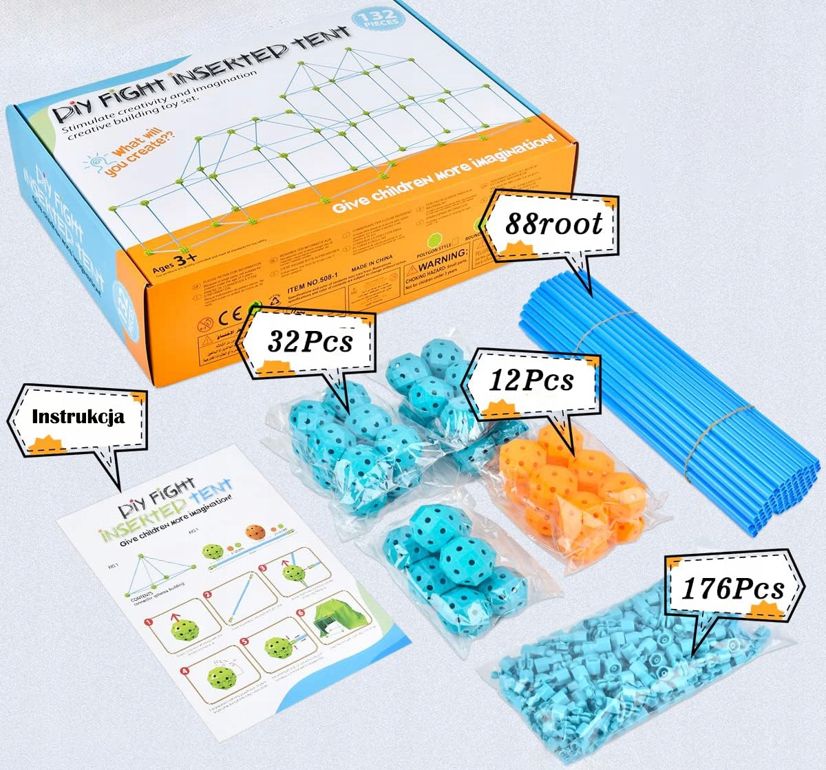 ➡️ Набор состоит из 88 армированных строительных трубок длиной 30 см. каждая и конструкция из 44 шариков диаметром 43 мм. В наборе есть один из наборов с самыми длинными трубками и самыми большими конструкционными шариками.