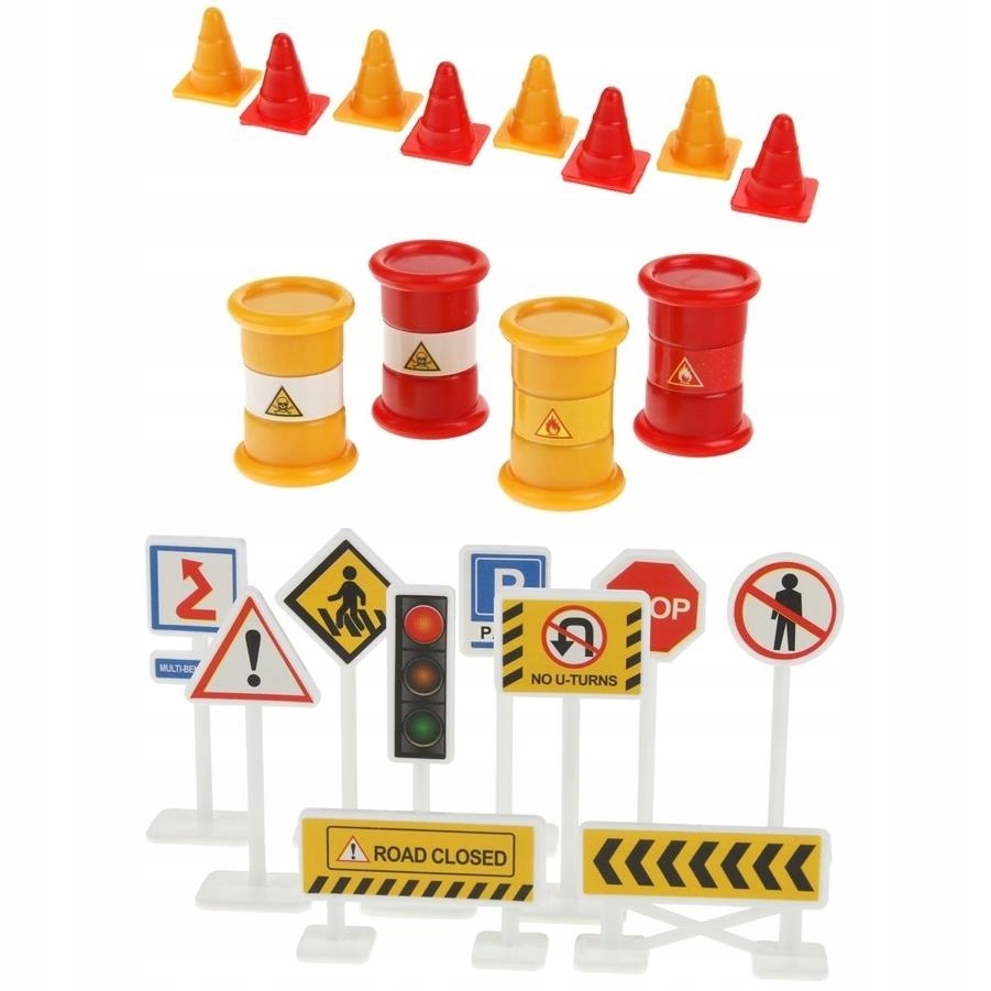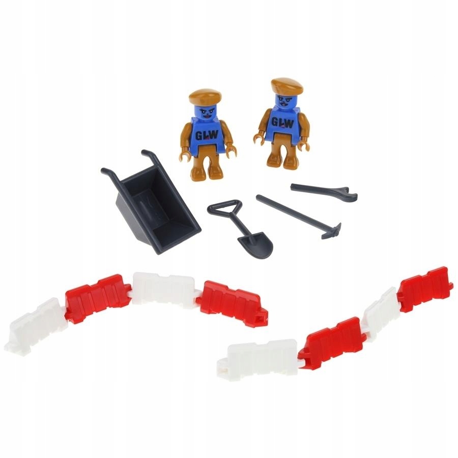 - ✔️ Аксессуары (конусы, барьеры, знаки, тачка, лопата, молоток, гаечный ключ, предупредительные барьеры, бочки, рабочие)