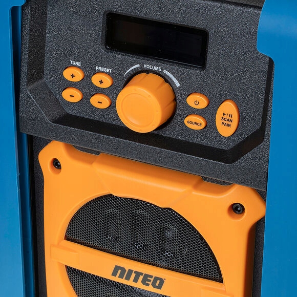 Благодаря усиленному корпусу радиостанция NITEO устойчива к пыли, пыли и воде, что гарантирует безотказную работу во всех, даже самых тяжелых условиях. Устройство оснащено возможностью подключения Bluetooth и разъемом AUX, который позволяет подключить другой источник музыки, например, смартфон. Кроме того, мы можем закодировать до 20 радиостанций в памяти радио.