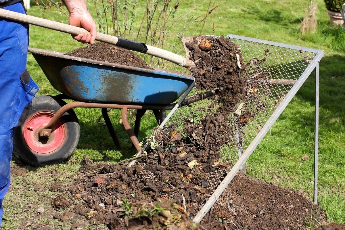 Готовый компост разрыхленный и аэрированный, который легко удобрять, а просеянные отходы отправляются обратно в компостер.