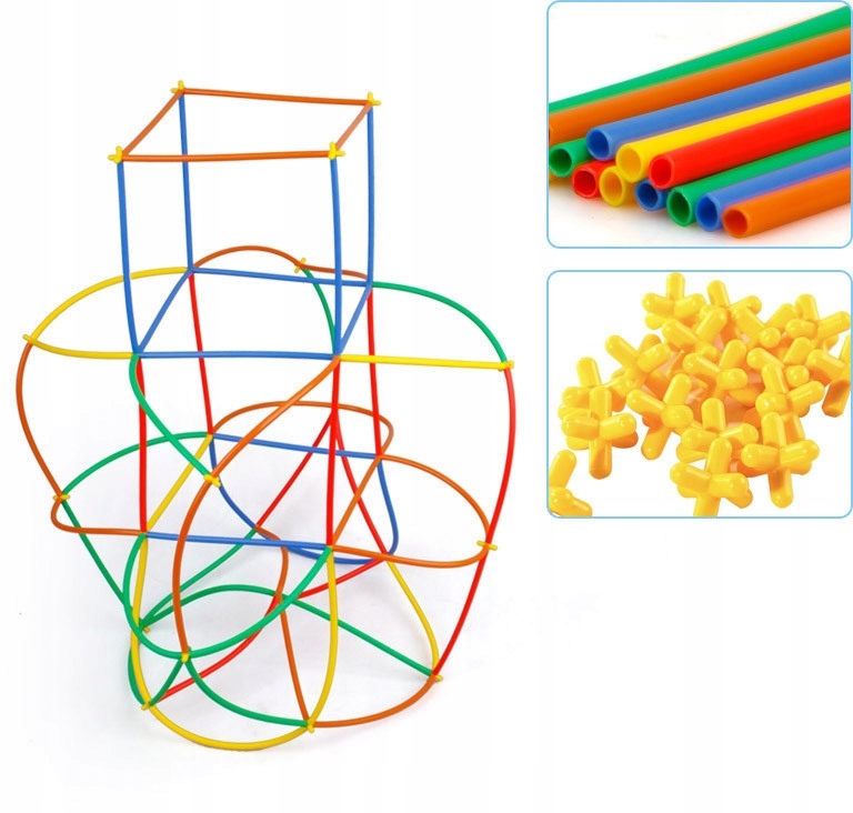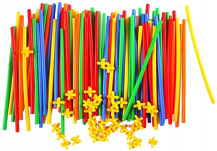Блоки состоят из разноцветных соломинок и соединителей в виде разноцветных крестиков, которые позволяют соединять соломинки между собой. Каждый из этих разъемов имеет целых 6 выступов, которые позволяют создавать удивительные конструкции. Вы также можете создавать конструкции арочных форм.