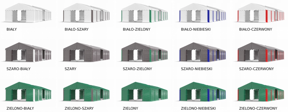 палатки состоят из модулей с длиной 2, 4, 6, 8, 10 или 12 м и 1, 2-метровые расширения