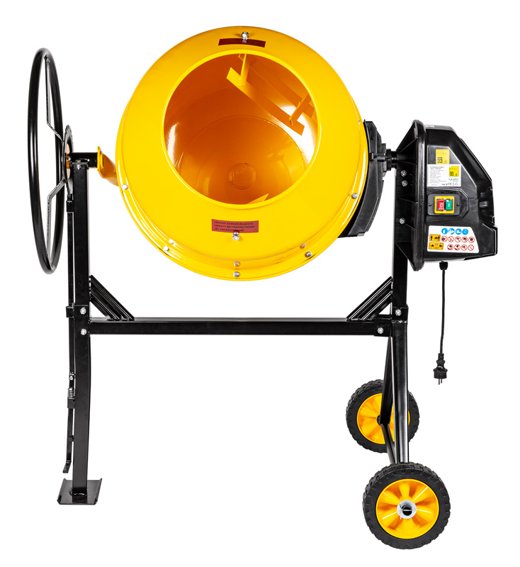 Общая емкость барабана составляет 220 л, рабочая вместимость ниже и составляет около 200 л. Наклонение барабана легко выполняется с помощью колеса с регулировочным диском.