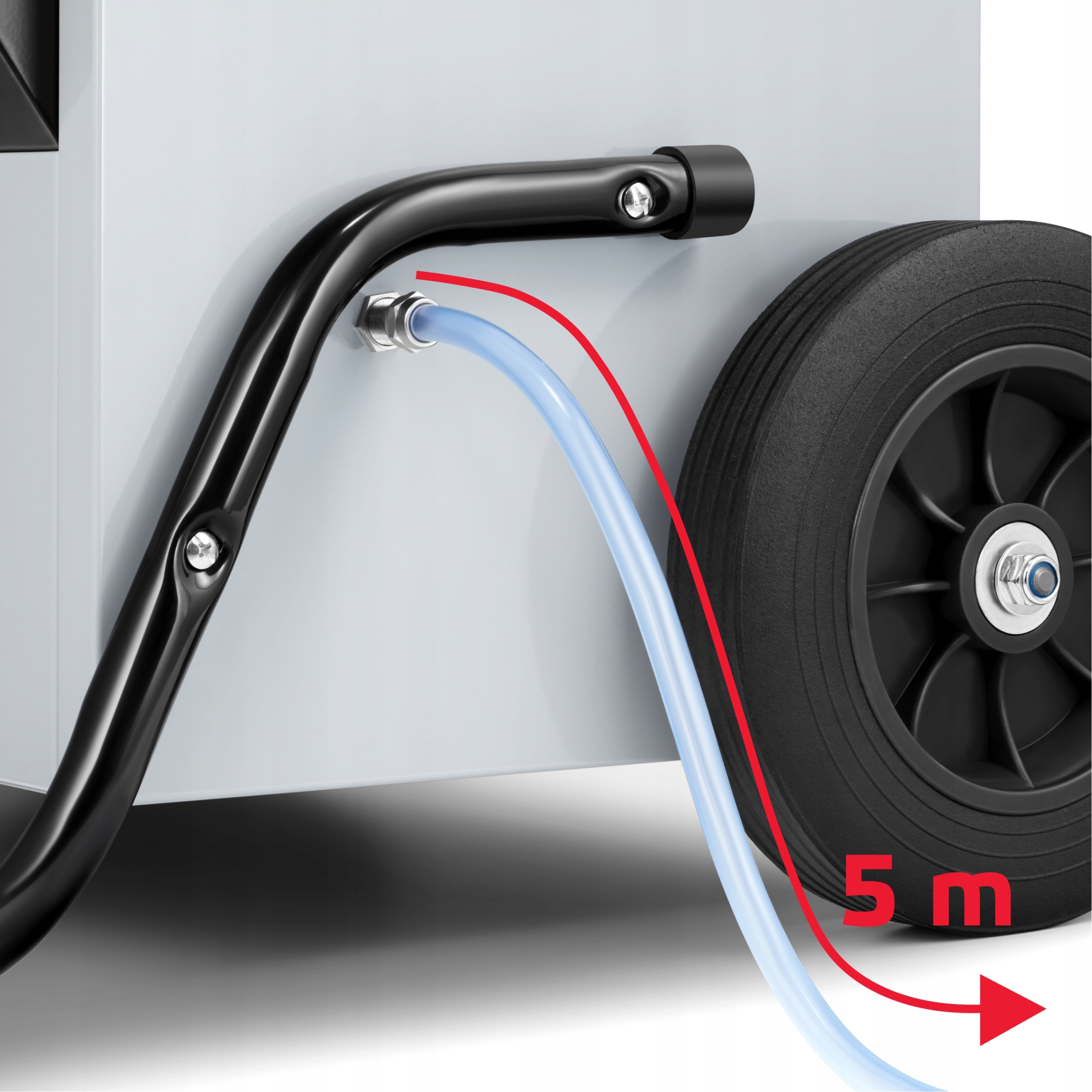 ✅ Встроенный в устройство насос для отвода конденсата позволяет осуществлять непрерывный автоматический слив воды во внешний бак или слив через шланг. Таким образом, устройство может работать полностью без присмотра. Целевой резервуар или слив воды могут располагаться на расстоянии до 5 метров от устройства.